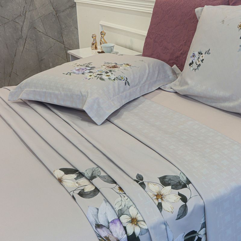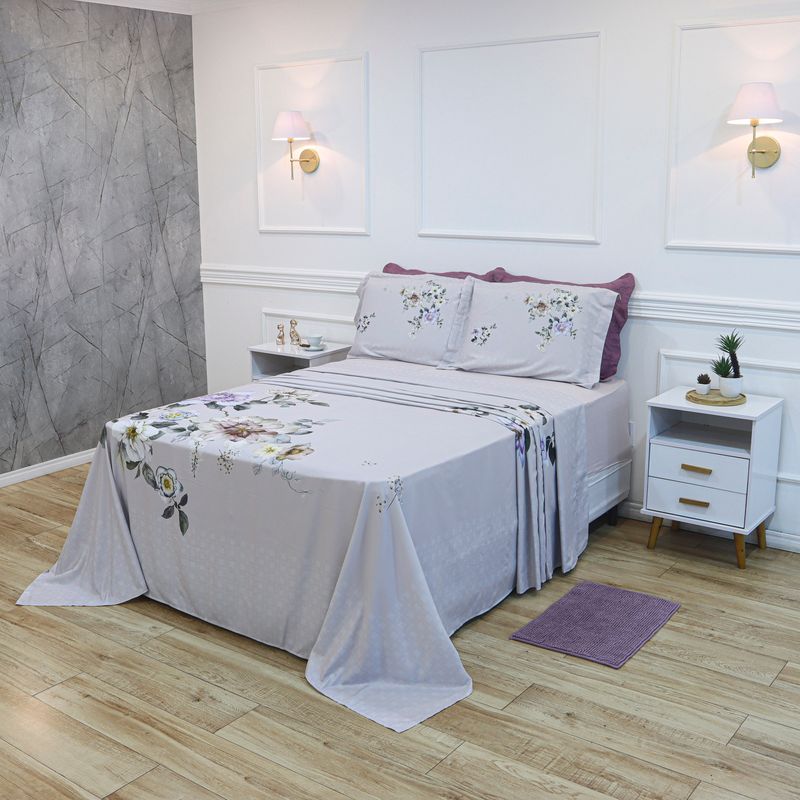JOGO DE CAMA CASAL 250 MICROPERCAL CLASSIC - FLORES ROSA SECO