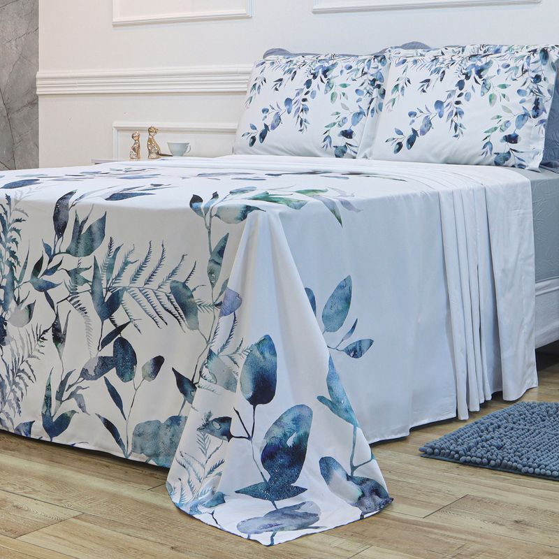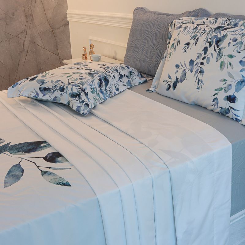 JOGO DE CAMA QUEEN 250 MICROPERCAL CLASSIC - FLORES AZUL