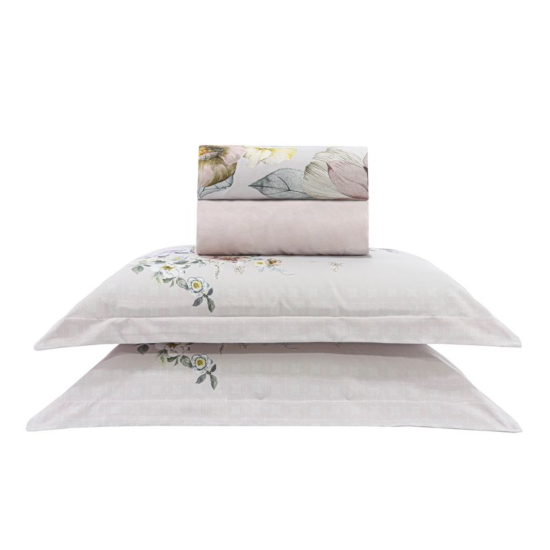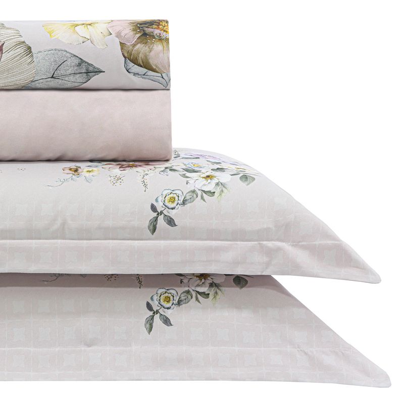 JOGO DE CAMA QUEEN 250 MICROPERCAL CLASSIC - FLORES ROSA SECO