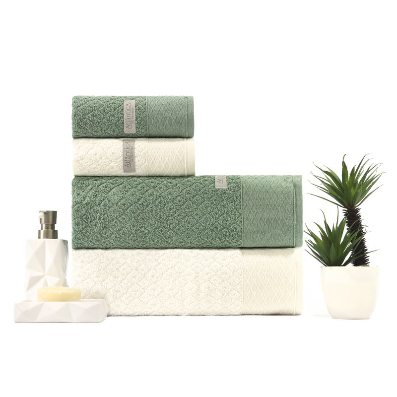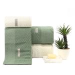 JOGO DE BANHO CAPRI FIO PENTEADO - 198614 VERDE SUTIL / OFF WHITE
