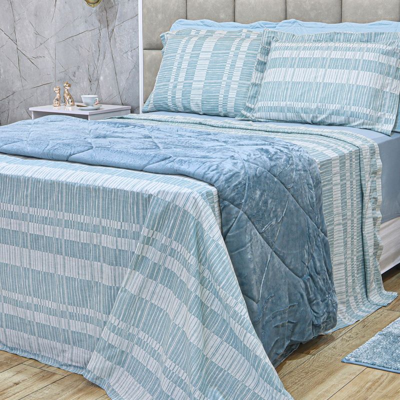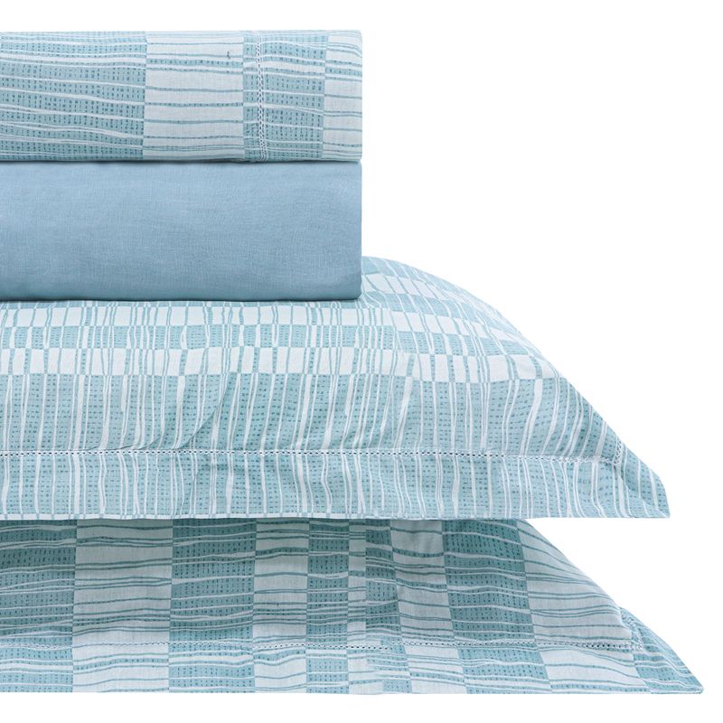JOGO DE CAMA QUEEN 180 FIOS PONTO AJOUR 100% ALGODÃO - VICTOR AZUL