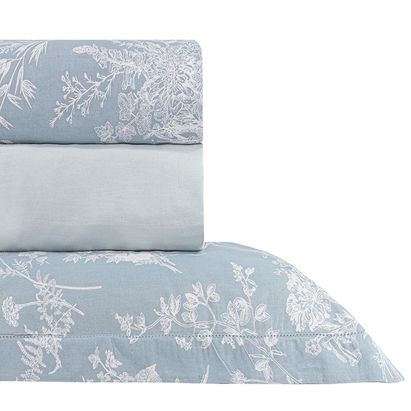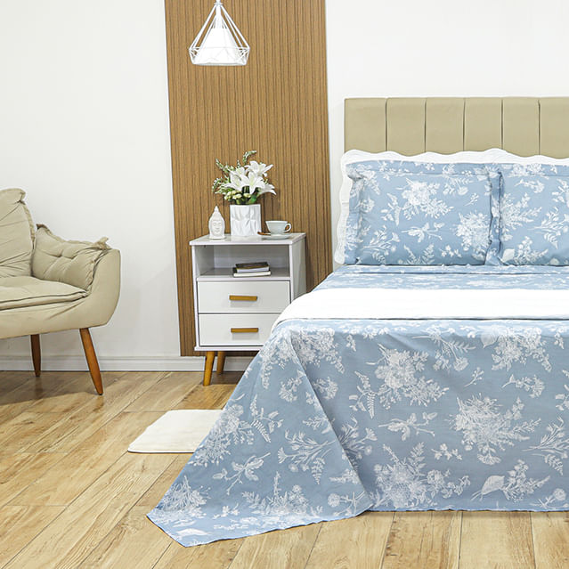 JOGO DE CAMA SOLTEIRO KING 180 FIOS PONTO AJOUR 100% ALGODÃO - EUCLIDES AZUL