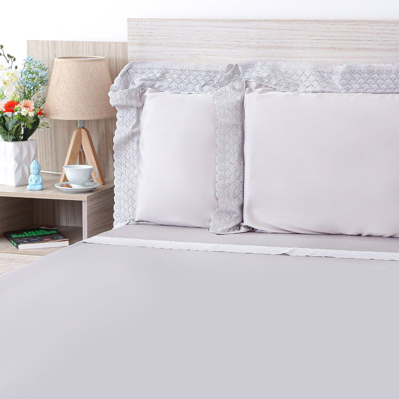 JOGO DE CAMA CASAL 400 FIOS BORDADO SUPREME - FRANCO CINZA