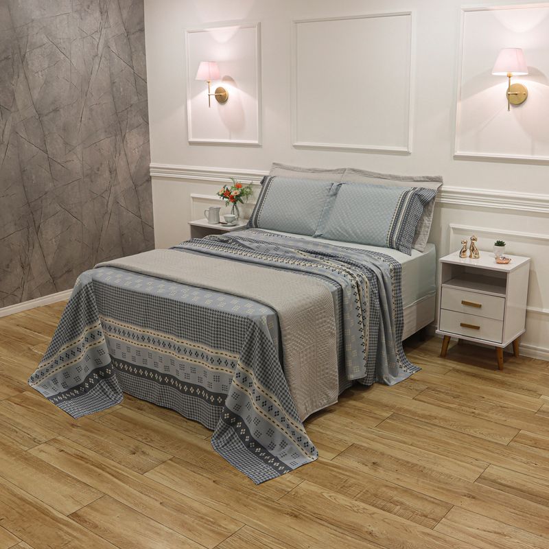 JOGO DE CAMA CASAL 250 MICROPERCAL CLASSIC - FORMAS AZUL