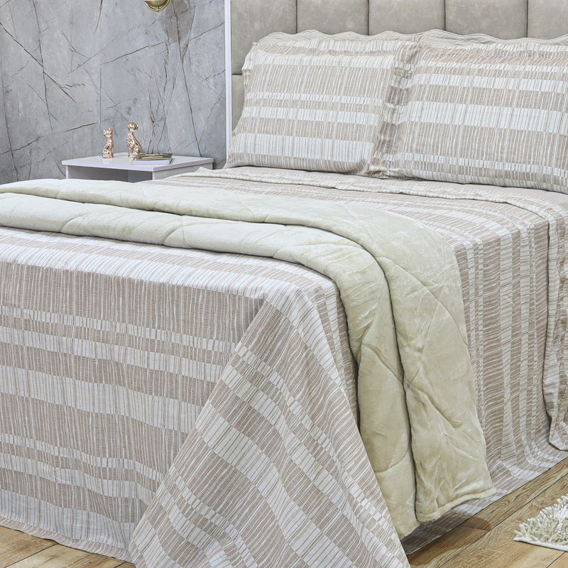 JOGO DE CAMA CASAL 180 FIOS PONTO AJOUR 100% ALGODÃO - GAEL BEGE
