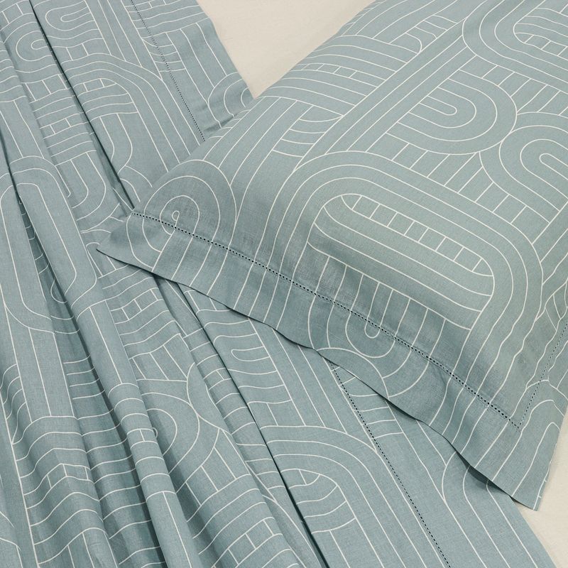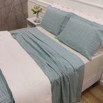 JOGO DE CAMA CASAL 180 FIOS PONTO AJOUR 100% ALGODÃO - DANTE AZUL