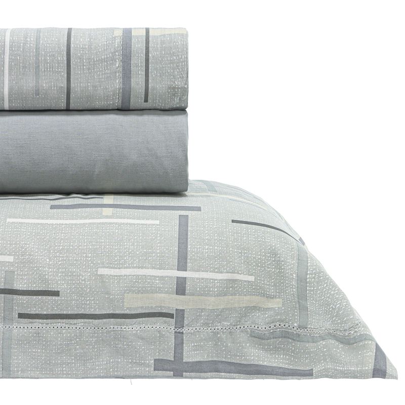 JOGO DE CAMA CASAL 180 FIOS PONTO AJOUR 100% ALGODÃO - FELIPE CINZA