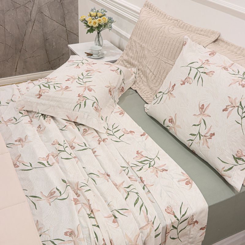 JOGO DE CAMA CASAL 180 FIOS PONTO AJOUR 100% ALGODÃO - GRACILENE ROSA