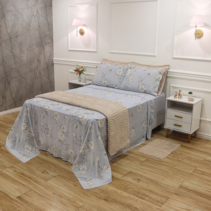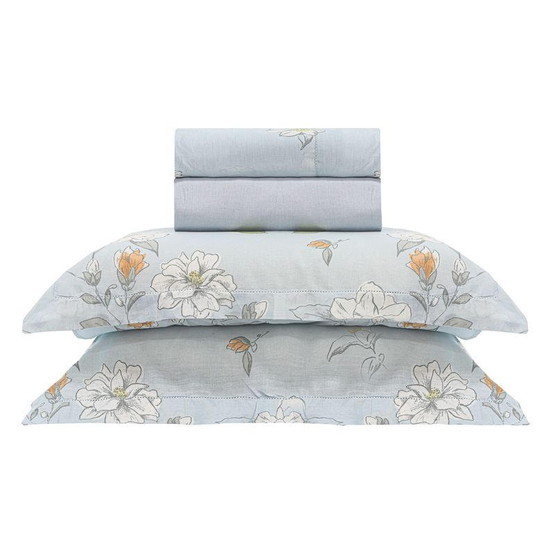 JOGO DE CAMA CASAL 180 FIOS PONTO AJOUR 100% ALGODÃO - IOLANDA AZUL