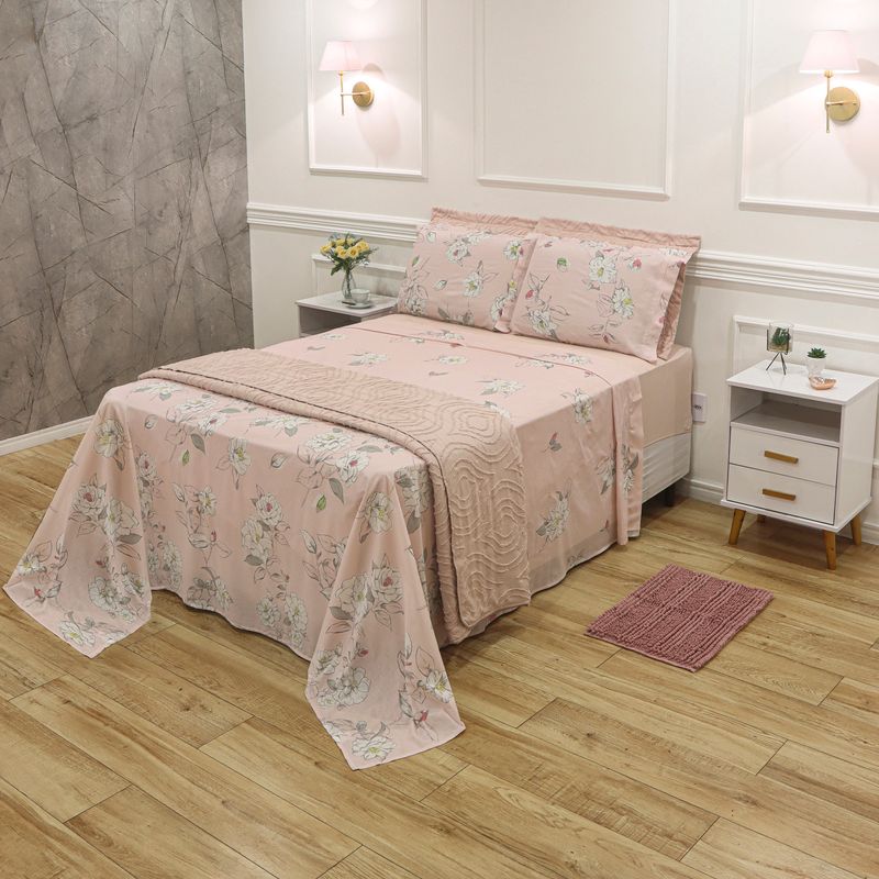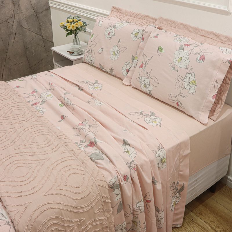 JOGO DE CAMA CASAL 180 FIOS PONTO AJOUR 100% ALGODÃO - IOLANDA ROSA