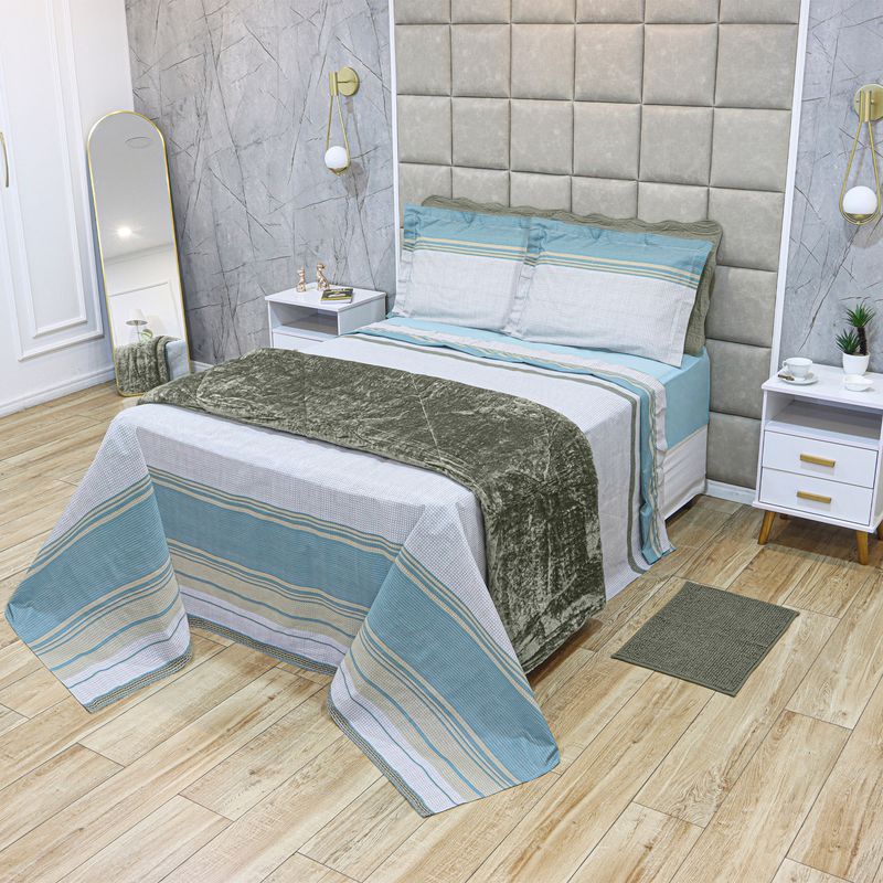 JOGO DE CAMA CASAL 180 FIOS PONTO AJOUR 100% ALGODÃO - RUBI VERDE