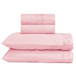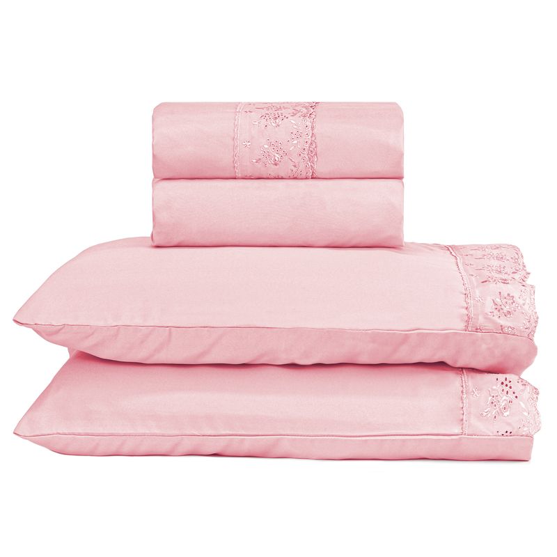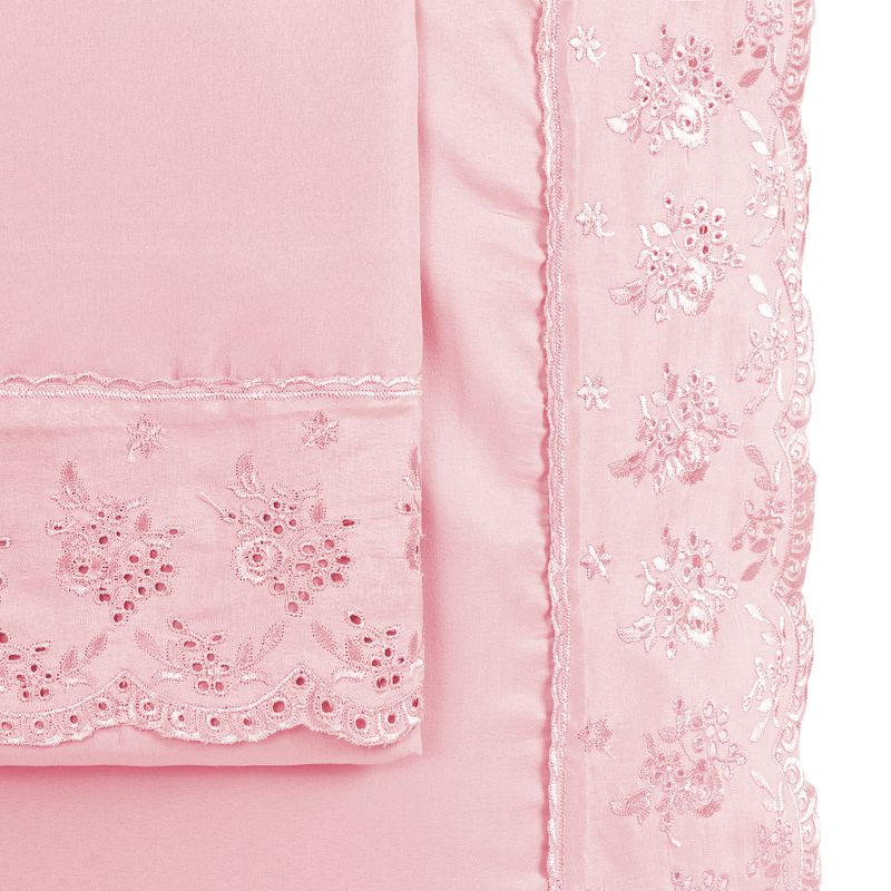 JOGO DE CAMA CASAL BORDADO INGLÊS - BROTINHO ROSA