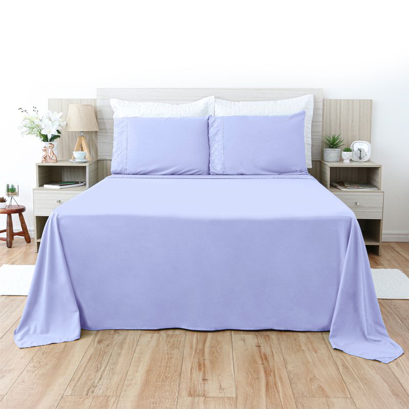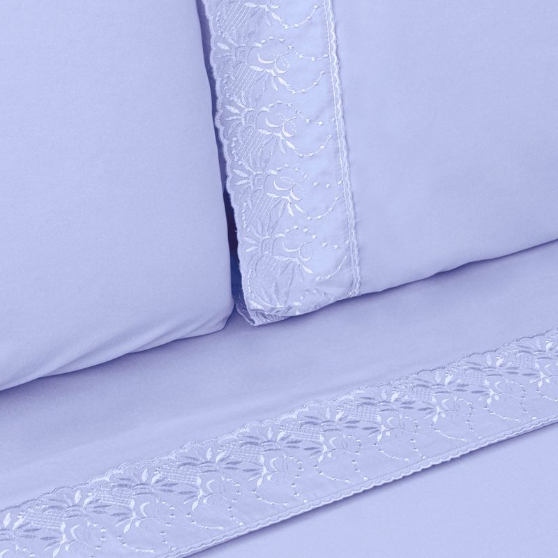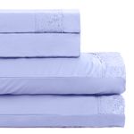 JOGO DE CAMA CASAL BORDADO INGLÊS - BUQUÊ LILÁS CLARO