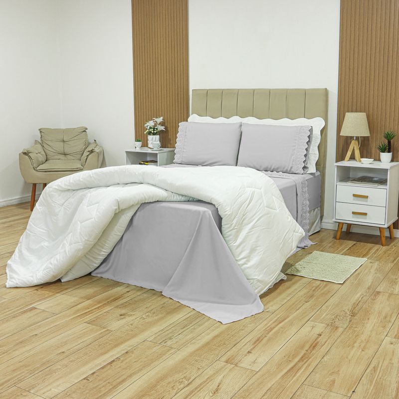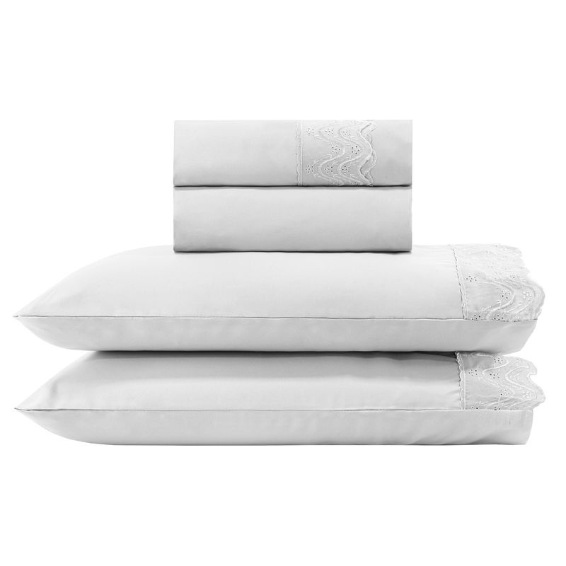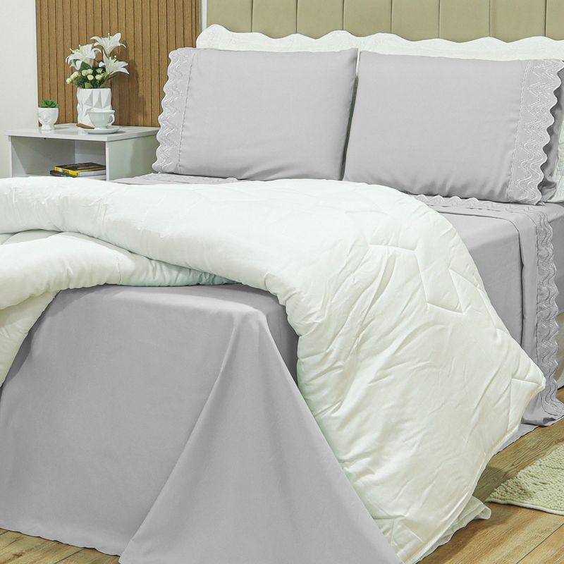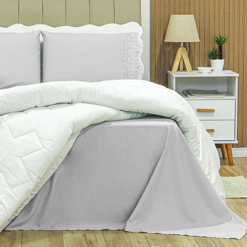 JOGO DE CAMA CASAL BORDADO INGLÊS - CRAVO CINZA