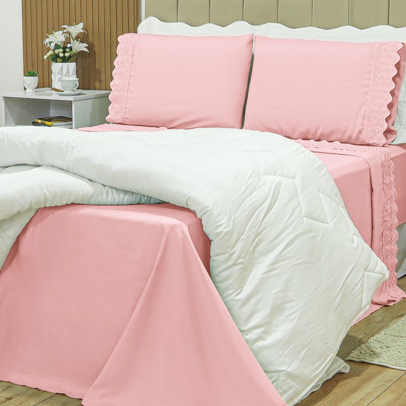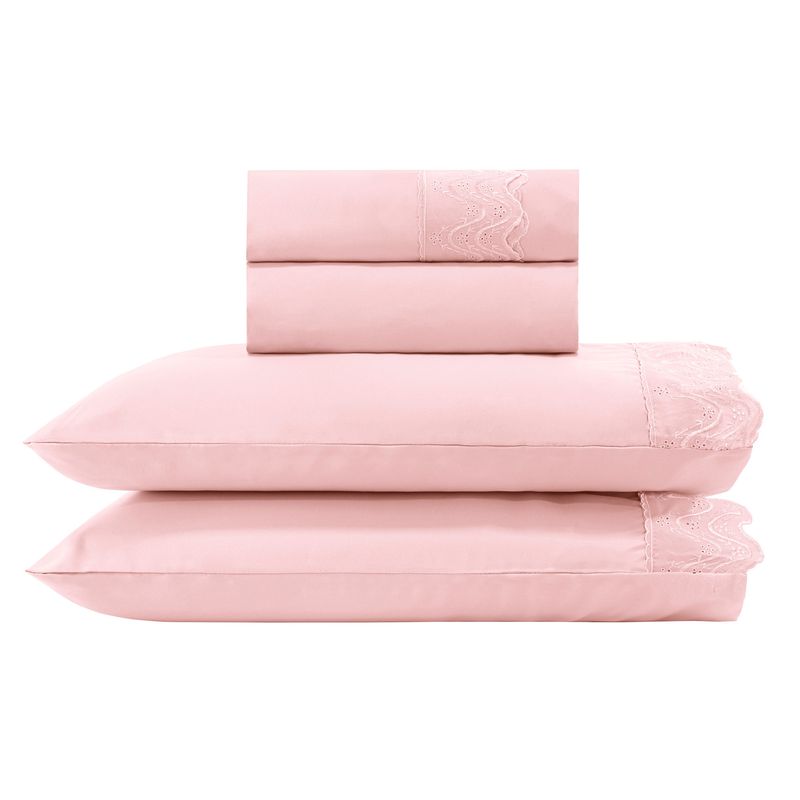 JOGO DE CAMA CASAL BORDADO INGLÊS - CRAVO ROSA