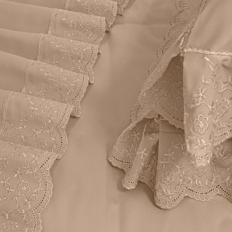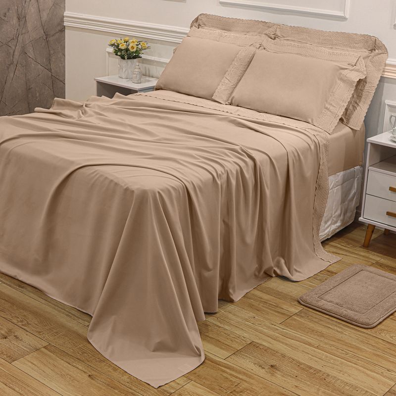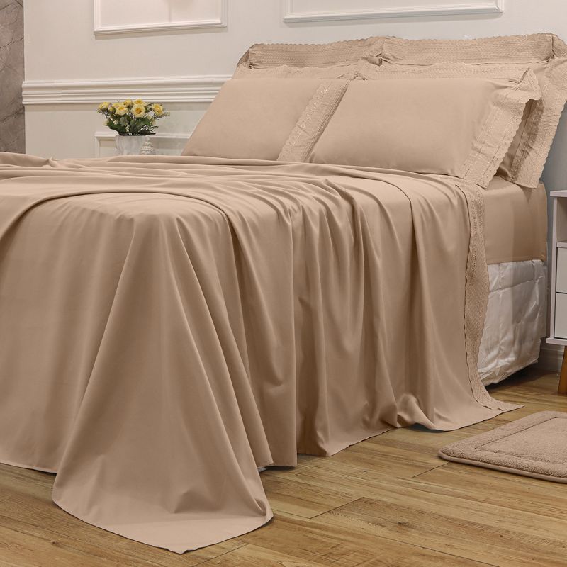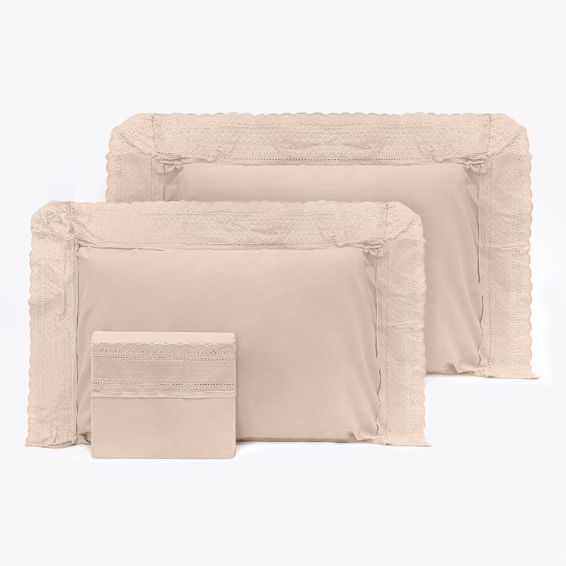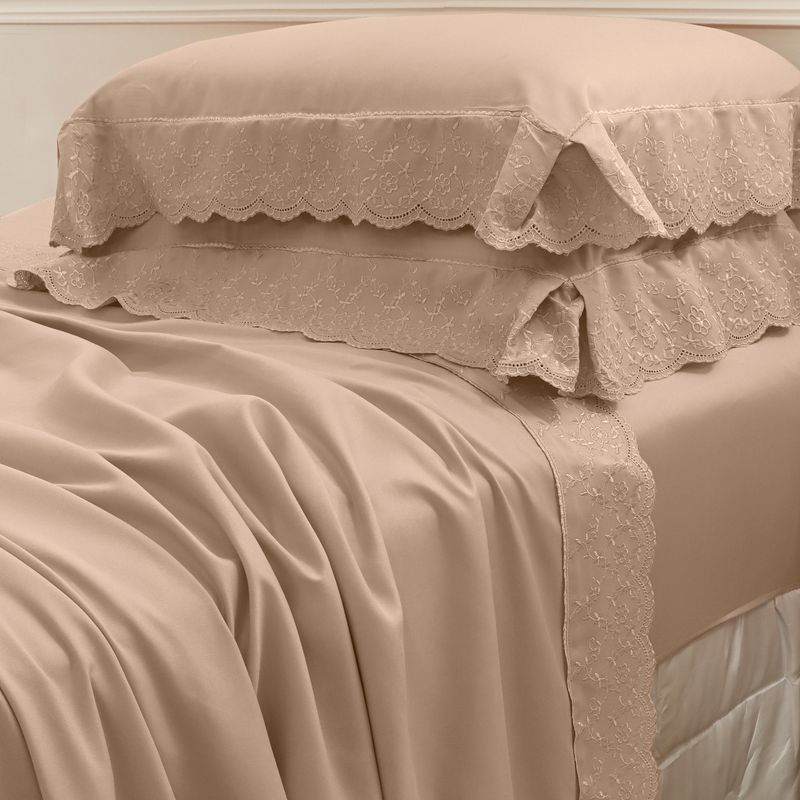 JOGO DE CAMA CASAL BORDADO INGLÊS - MARES BEGE