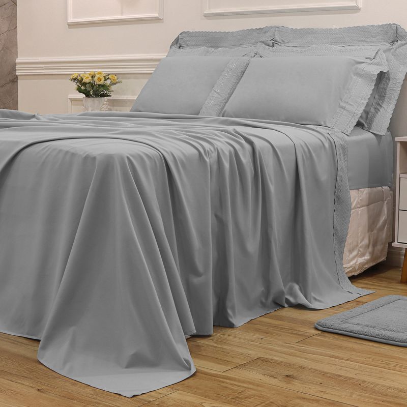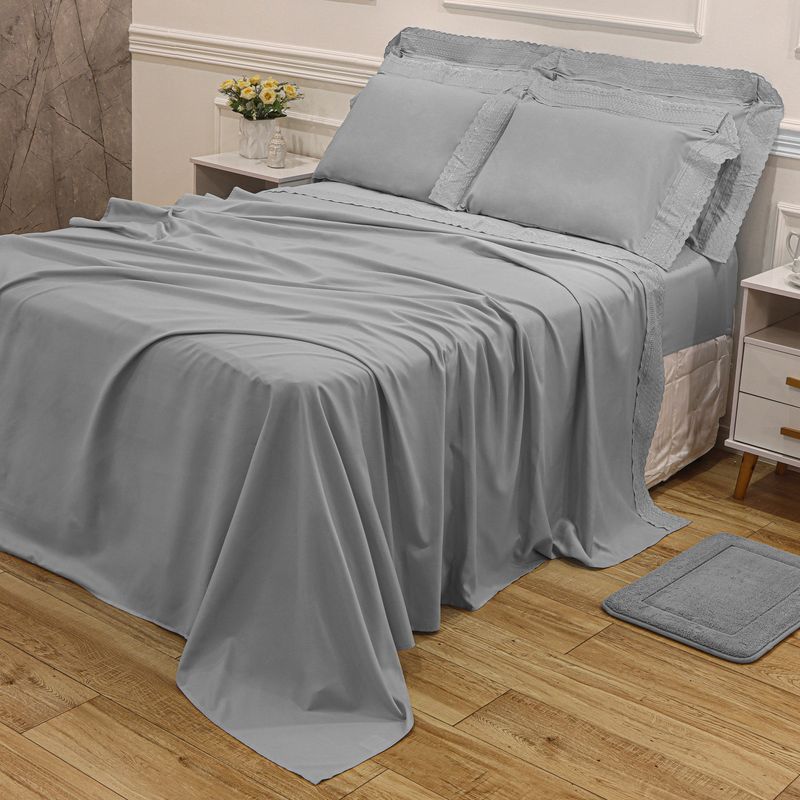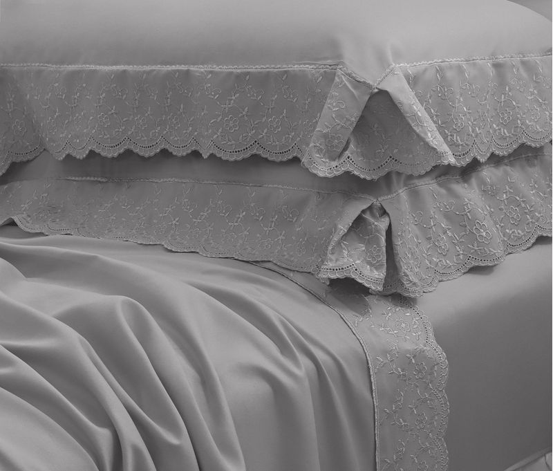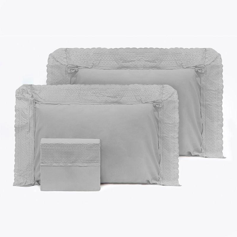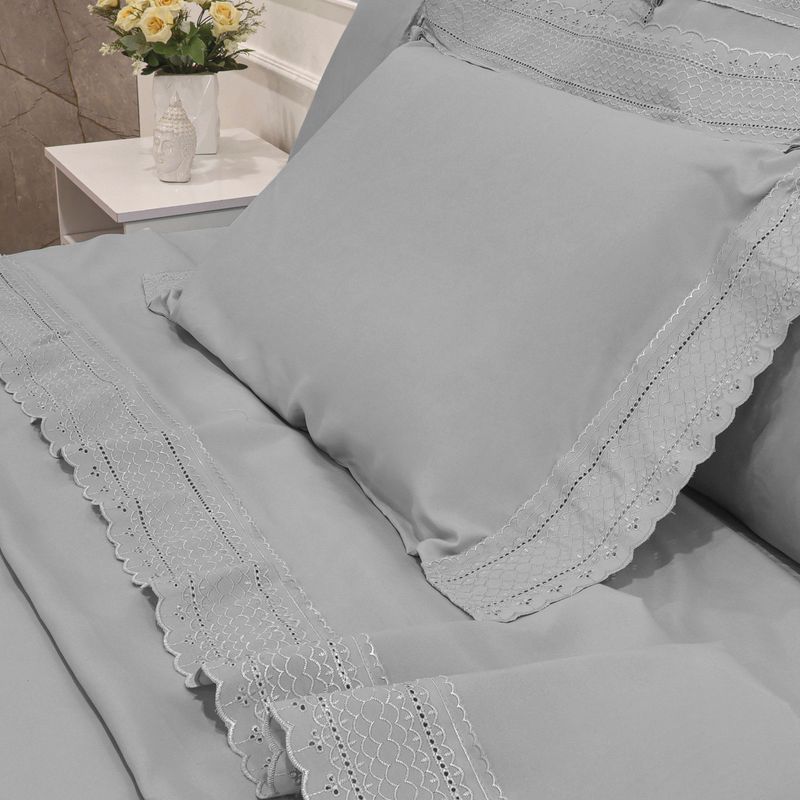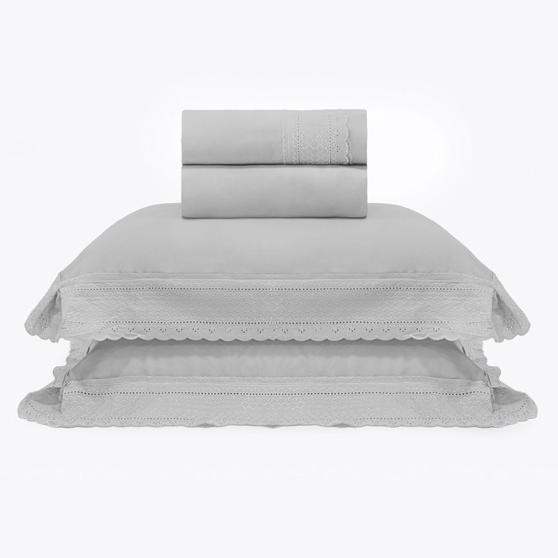 JOGO DE CAMA CASAL BORDADO INGLÊS - MARES CINZA