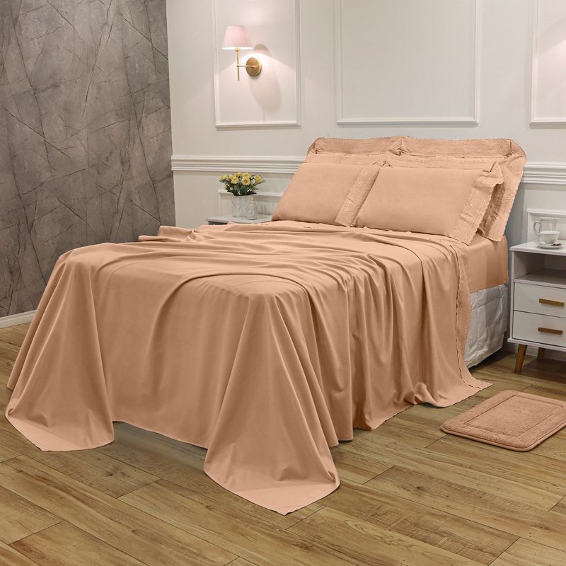 JOGO DE CAMA CASAL BORDADO INGLÊS - MARES ROSA