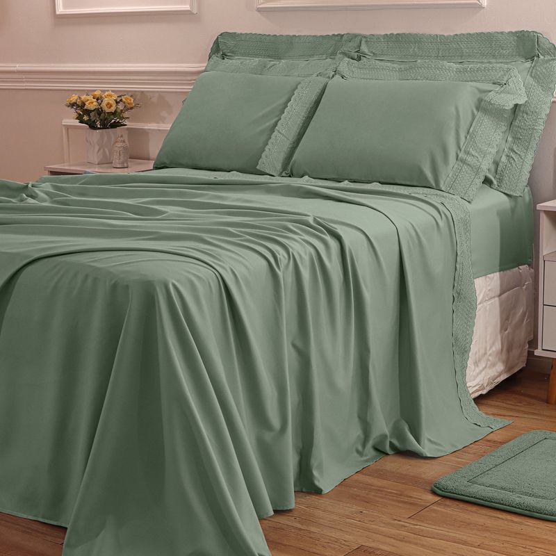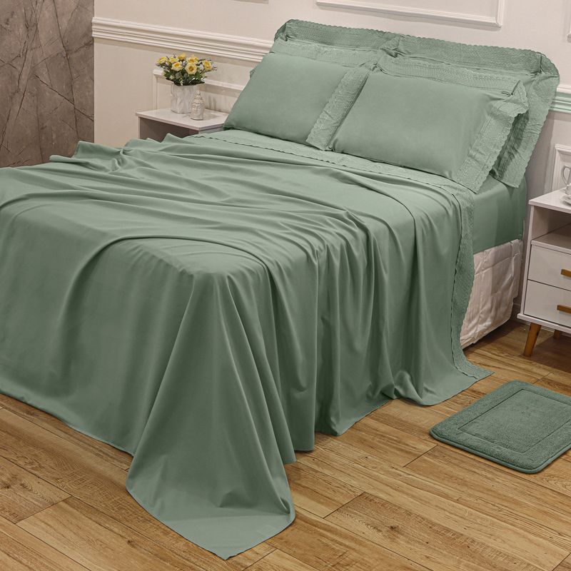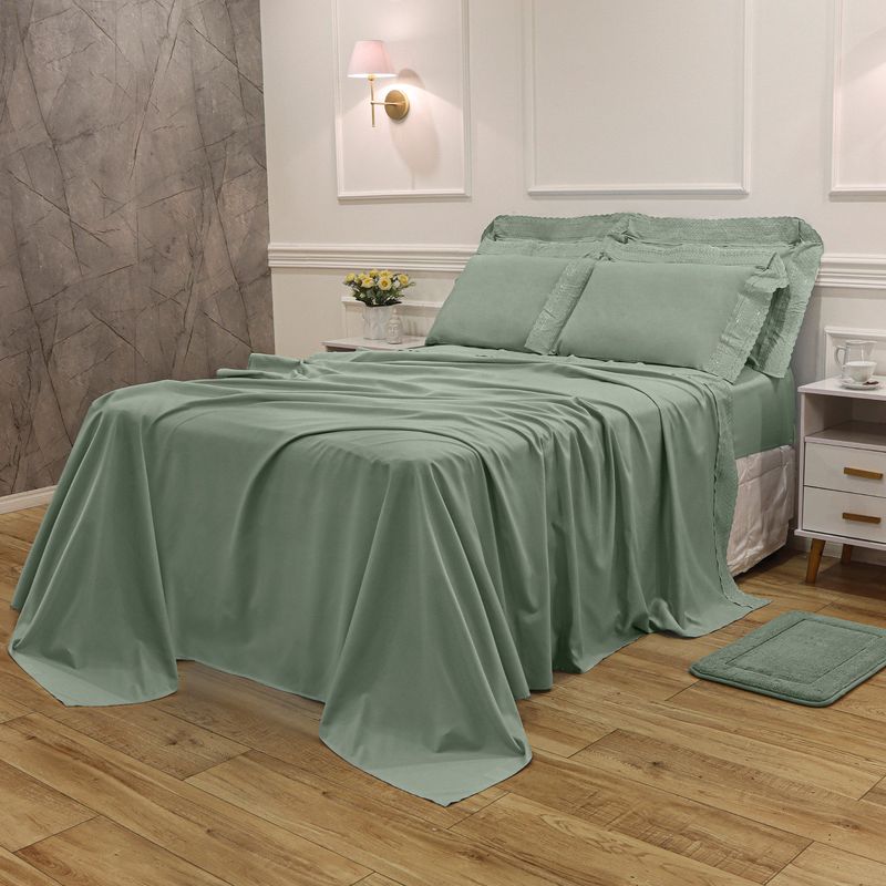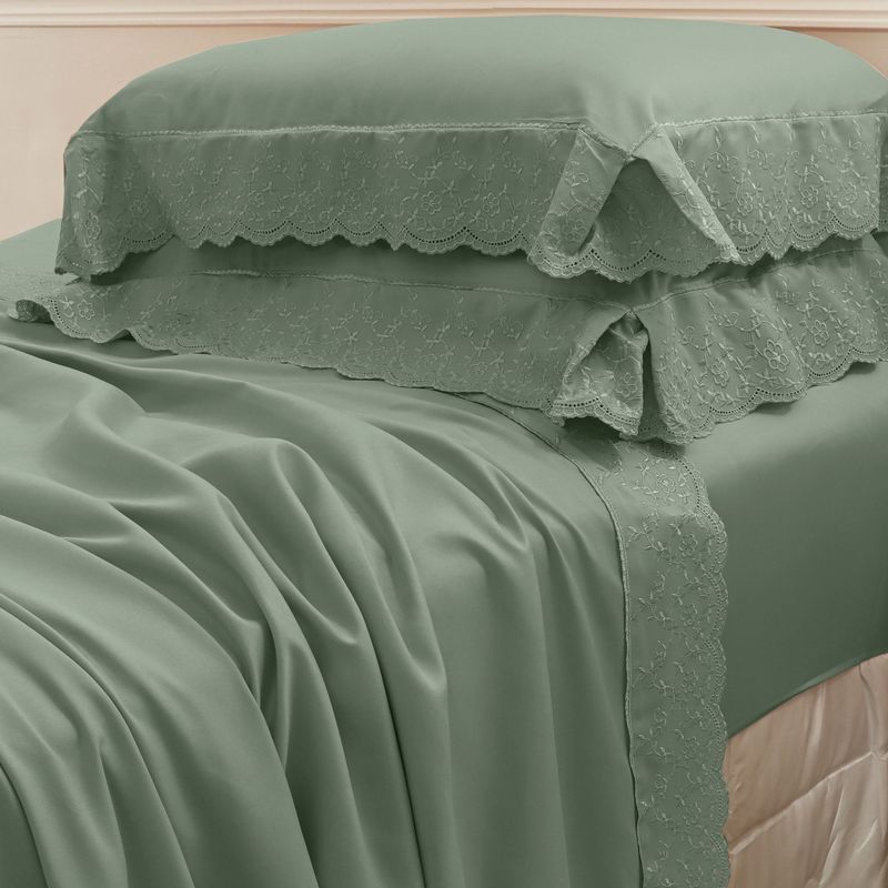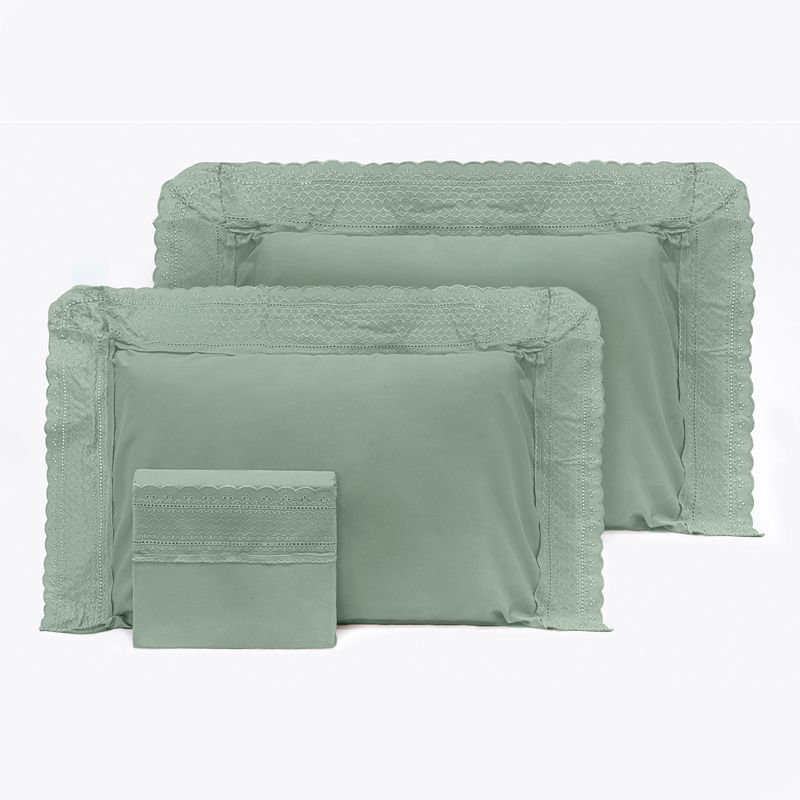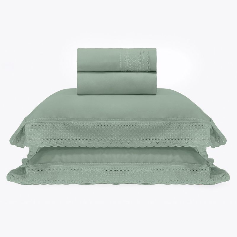 JOGO DE CAMA CASAL BORDADO INGLÊS - MARES VERDE