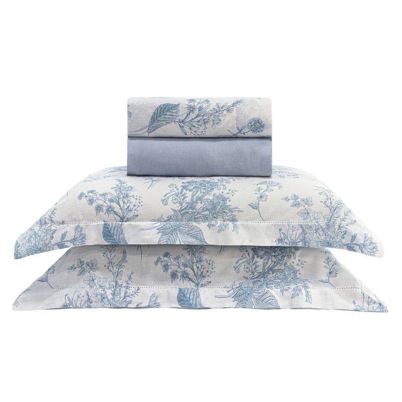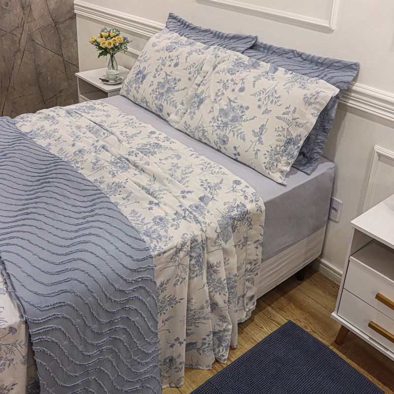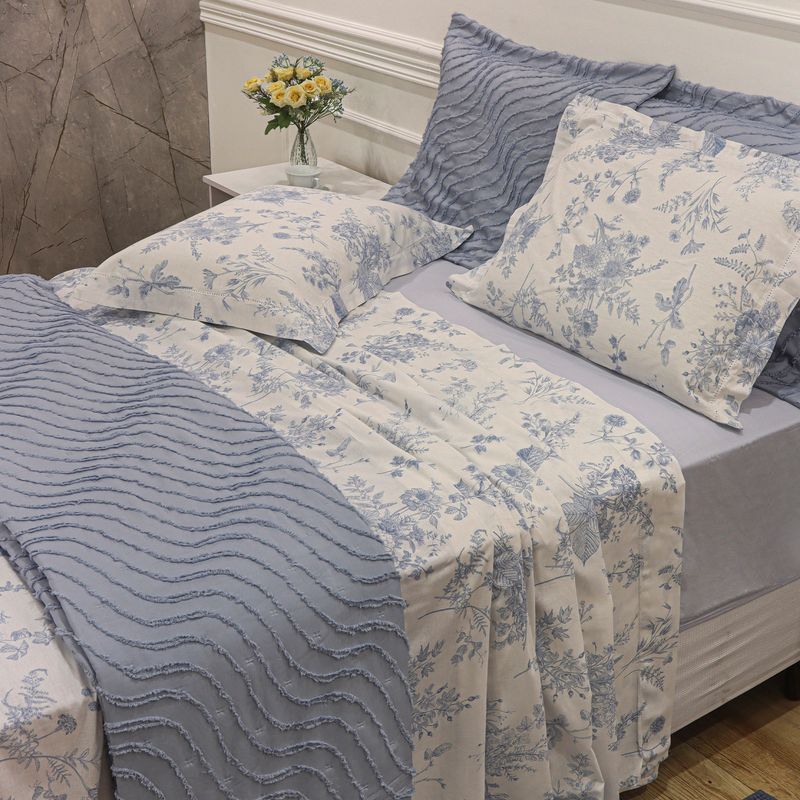 JOGO DE CAMA KING 180 FIOS PONTO AJOUR 100% ALGODÃO - ZIPORA AZUL