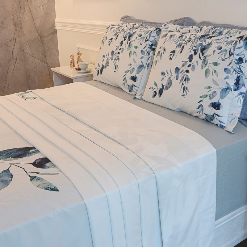 JOGO DE CAMA KING 250 MICROPERCAL CLASSIC - FLORES AZUL
