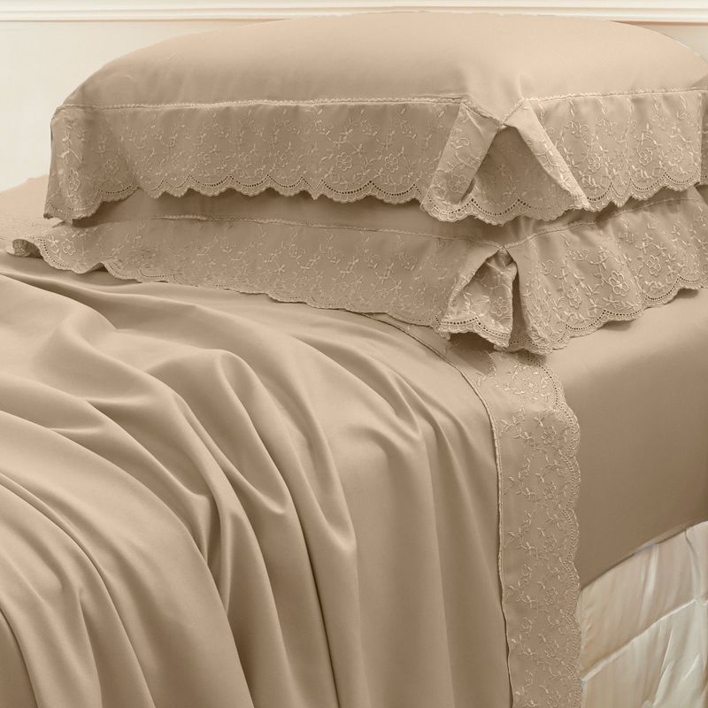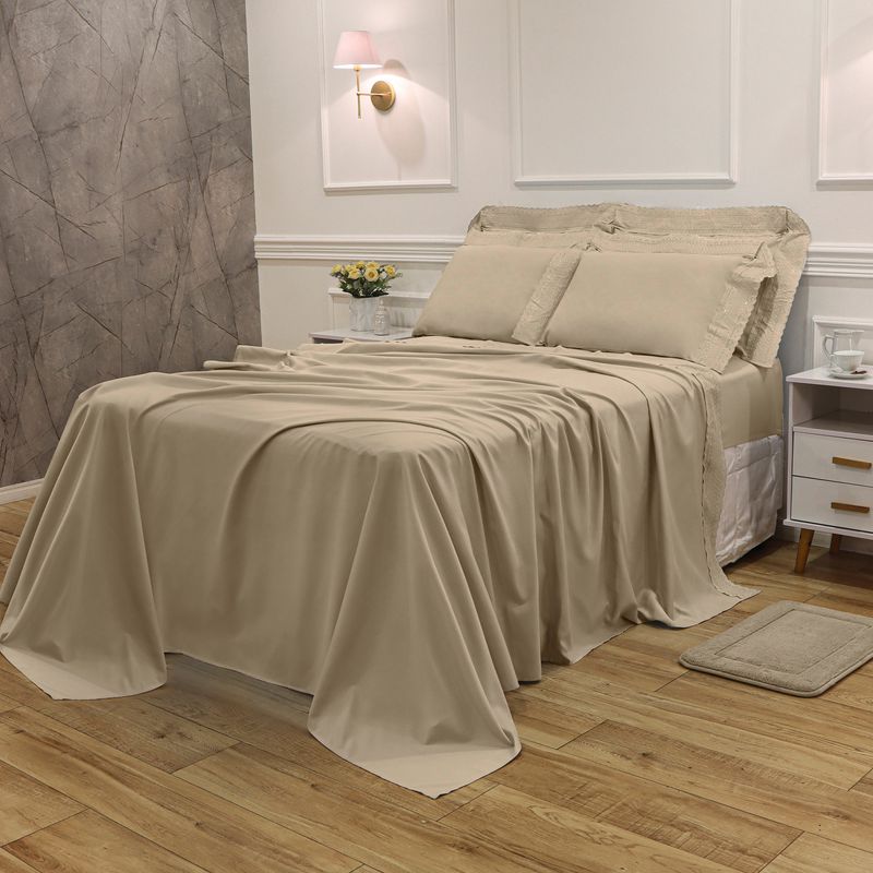JOGO DE CAMA KING BORDADO INGLÊS - ARVORE BEGE