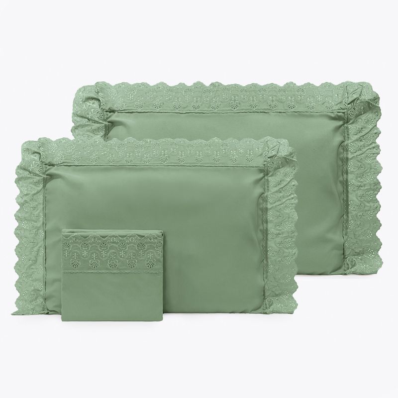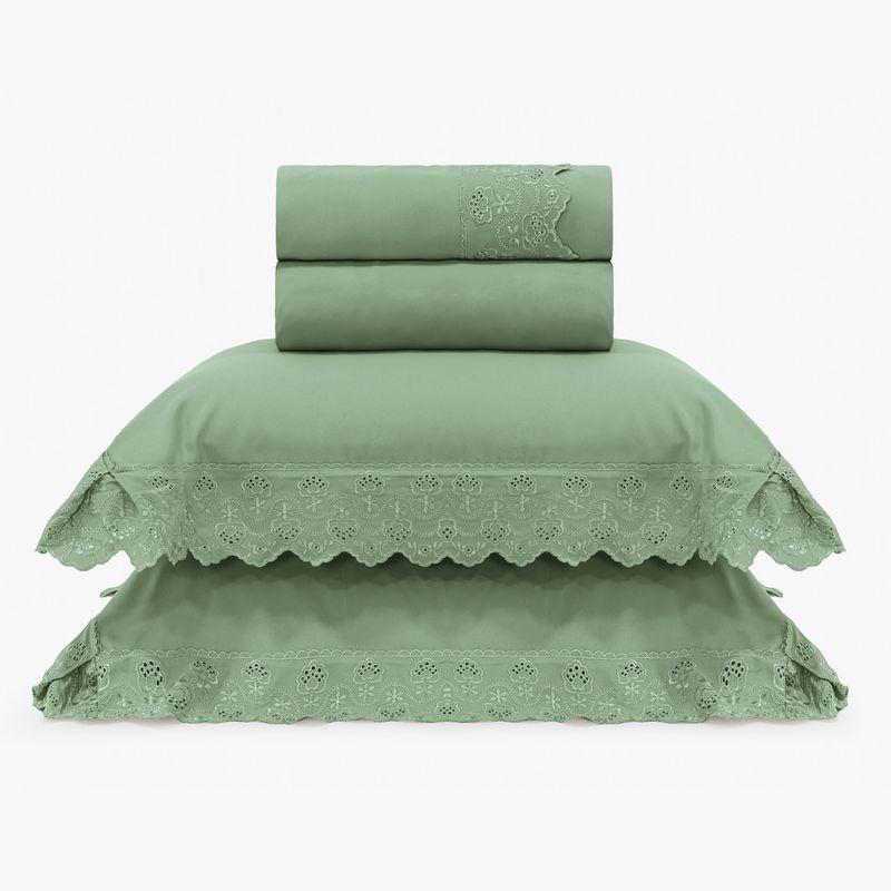 JOGO DE CAMA KING BORDADO INGLÊS - ARVORE VERDE ESCURO