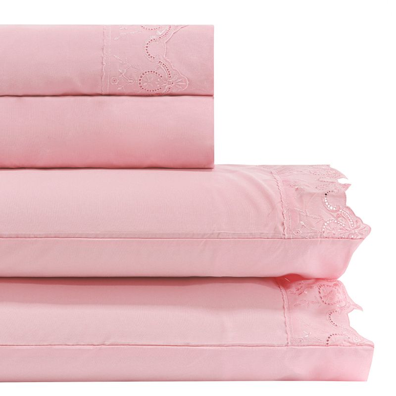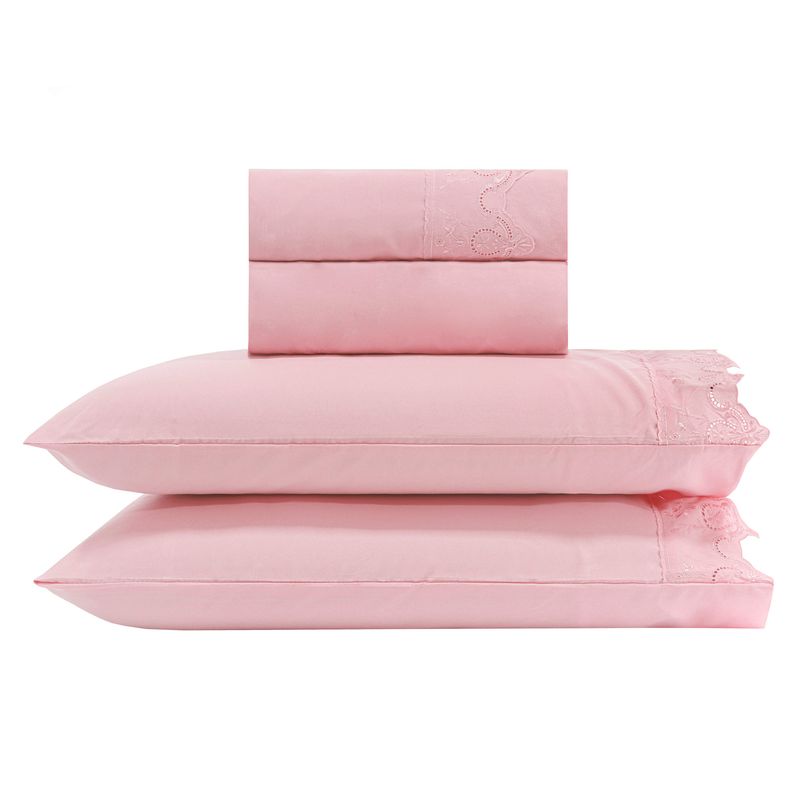 JOGO DE CAMA KING BORDADO INGLÊS - COROA ROSA