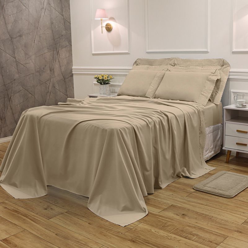 JOGO DE CAMA KING BORDADO INGLÊS - REDE BEGE