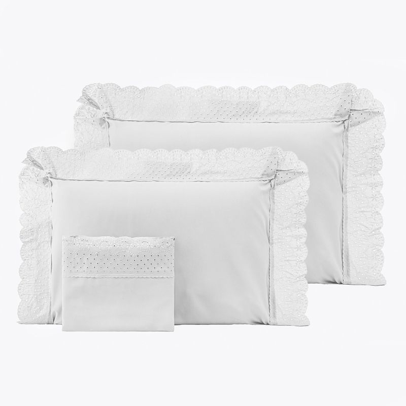 JOGO DE CAMA KING BORDADO INGLÊS - REDE BRANCO