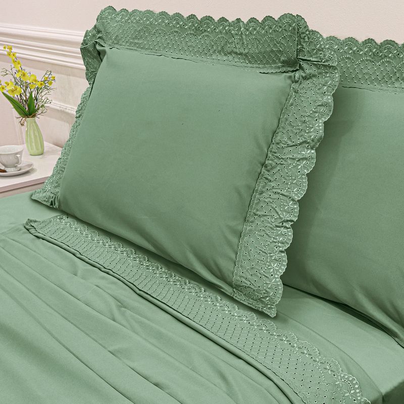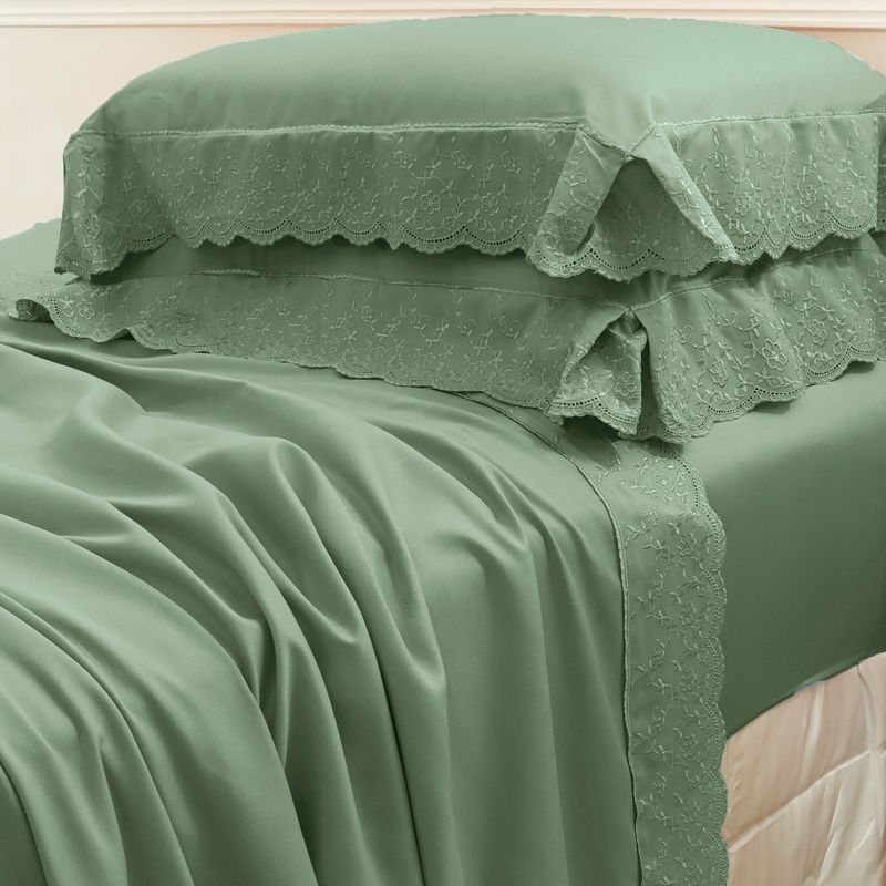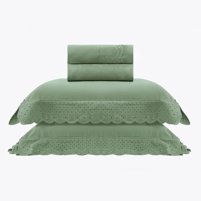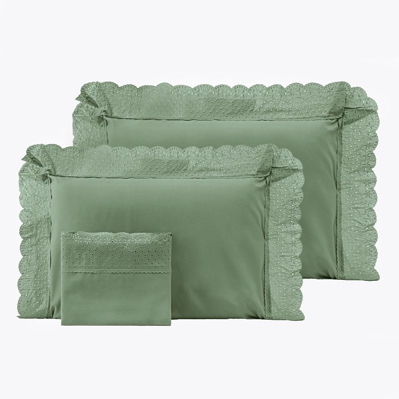 JOGO DE CAMA KING BORDADO INGLÊS - REDE VERDE ESCURO