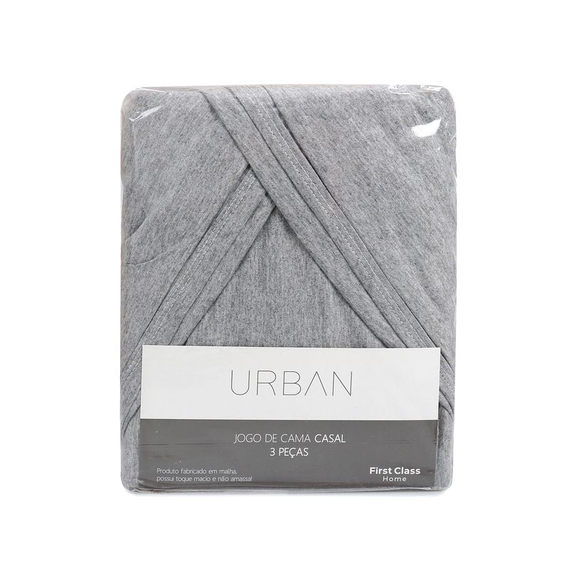 JOGO DE CAMA CASAL MALHA MESCLA - CINZA