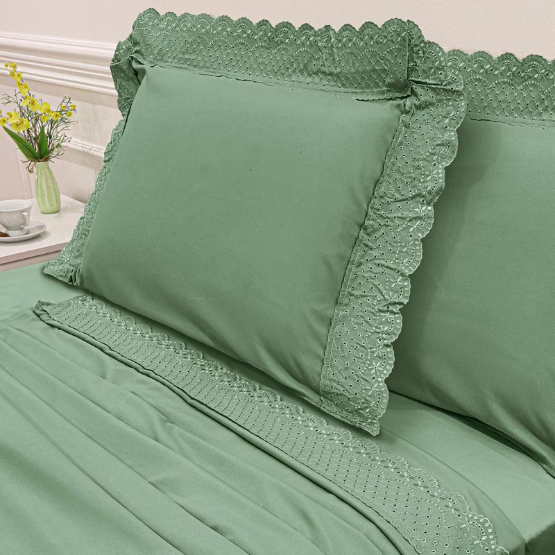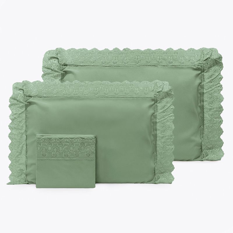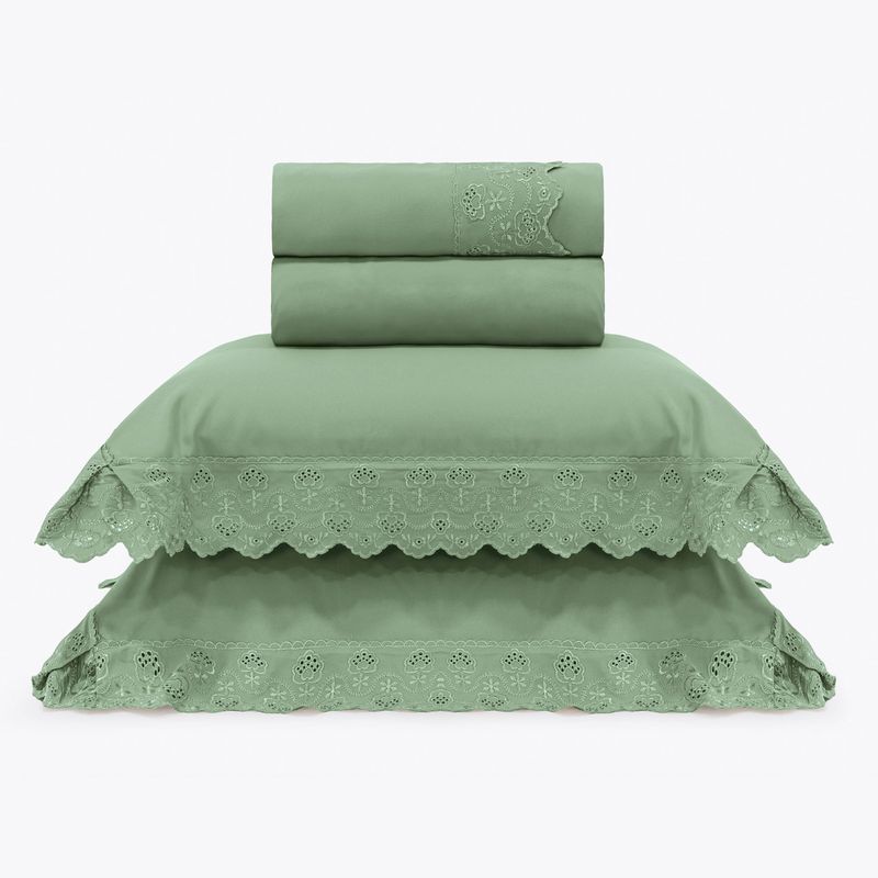 JOGO DE CAMA QUEEN BORDADO INGLÊS - ARVORE VERDE ESCURO
