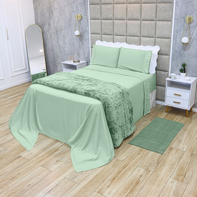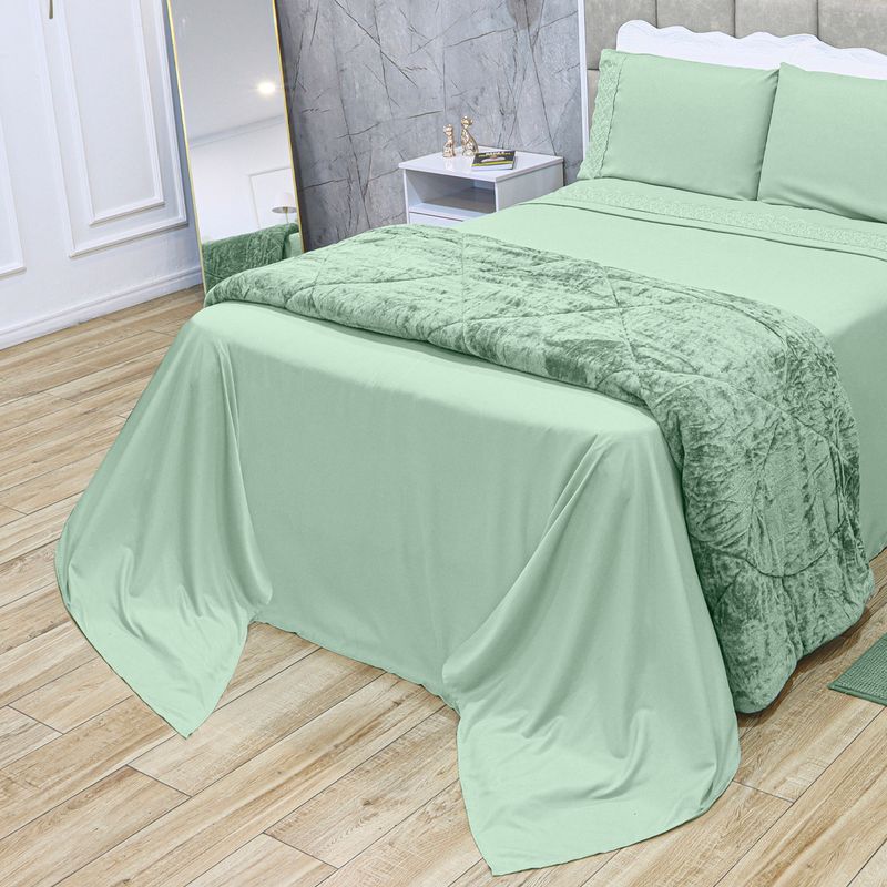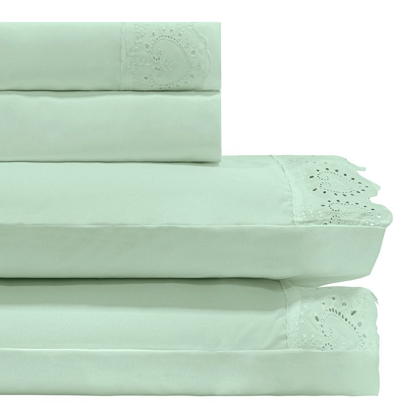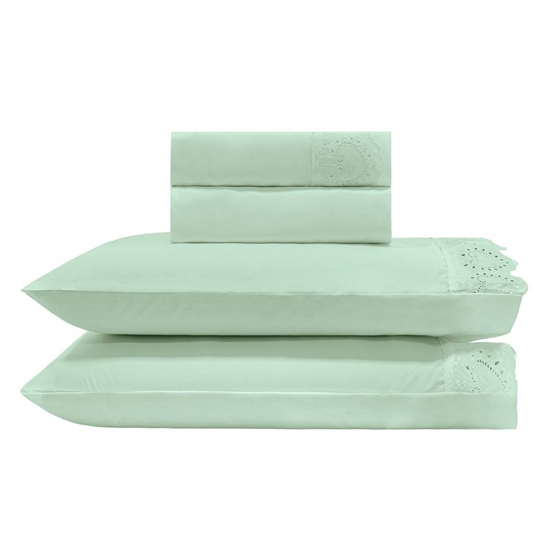 JOGO DE CAMA QUEEN BORDADO INGLÊS - CORAÇOES ABERTO VERDE