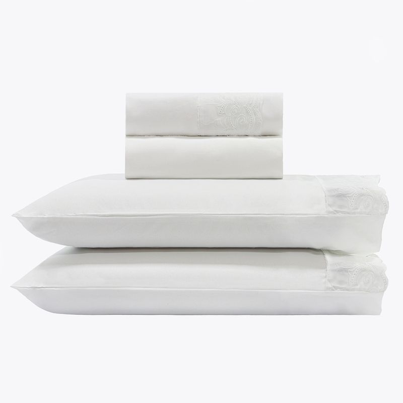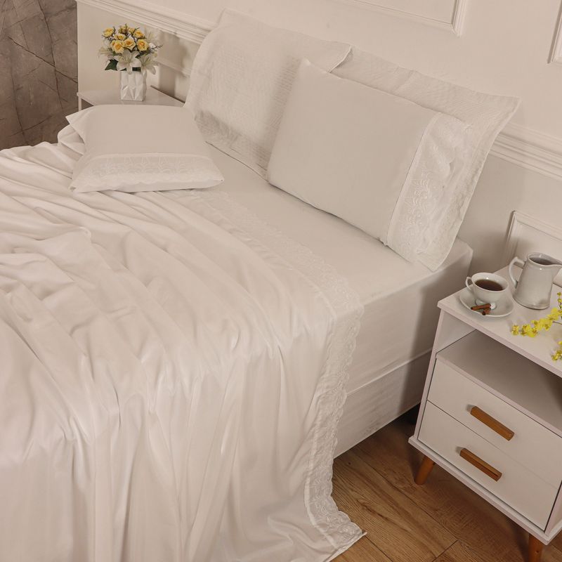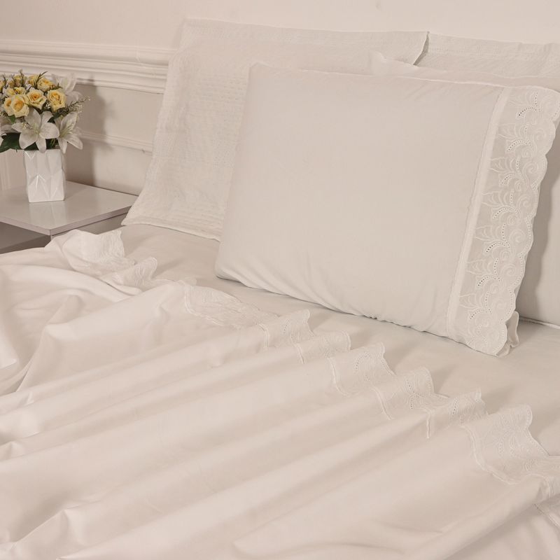 JOGO DE CAMA QUEEN BORDADO INGLÊS - DÁLIA BRANCO