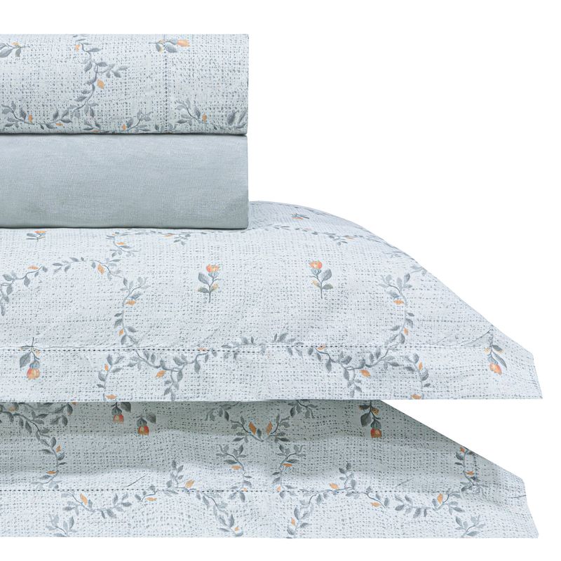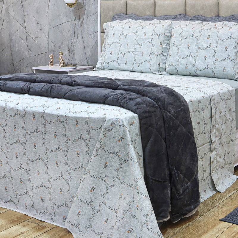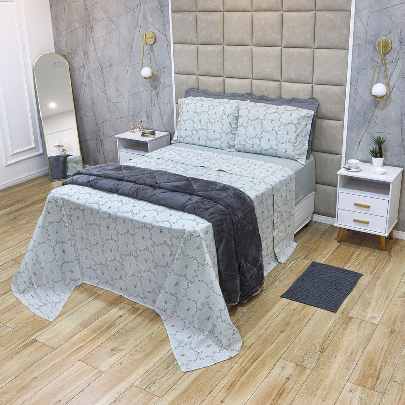 JOGO DE CAMA QUEEN 180 FIOS PONTO AJOUR 100% ALGODÃO - LUCIANA CINZA