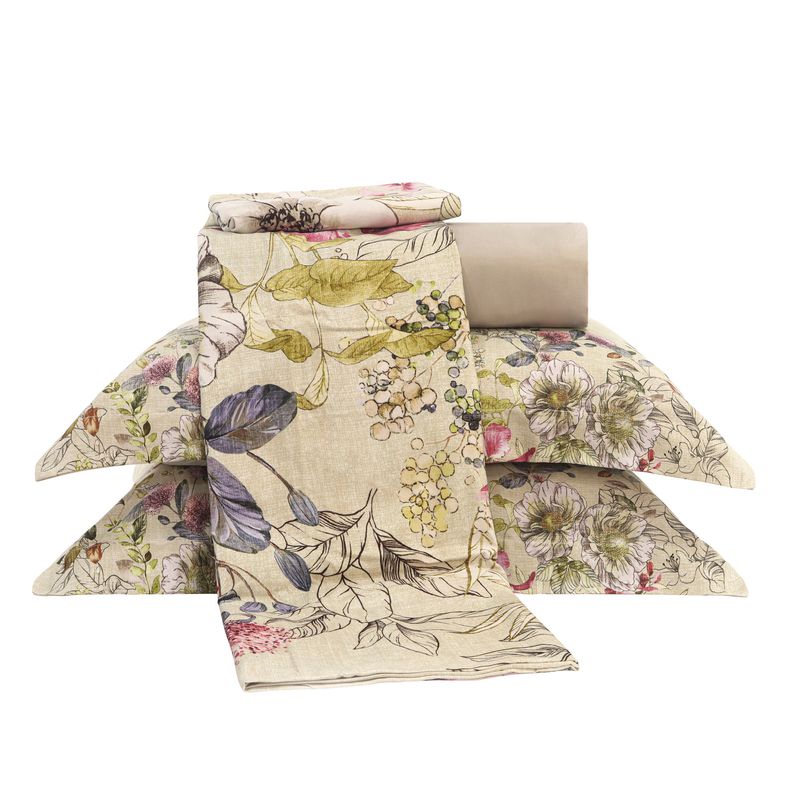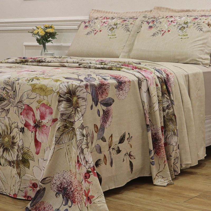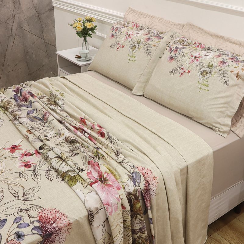 JOGO DE CAMA QUEEN 250 MICROPERCAL CLASSIC - FLORES BEGE