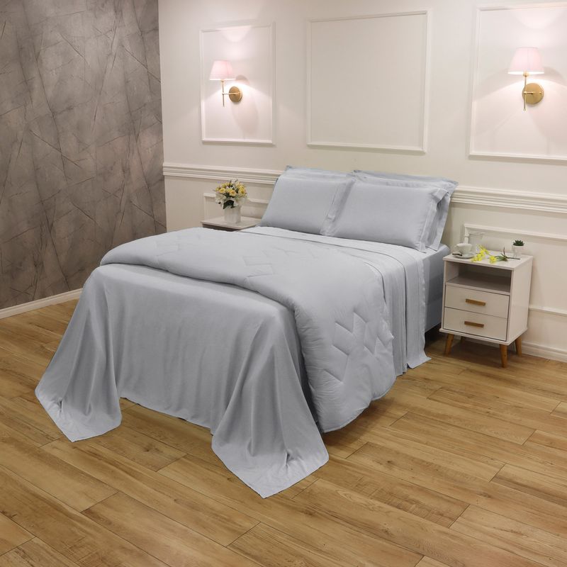 JOGO DE CAMA QUEEN 400 FIOS PONTO CHEIO - CINZA CLARO
