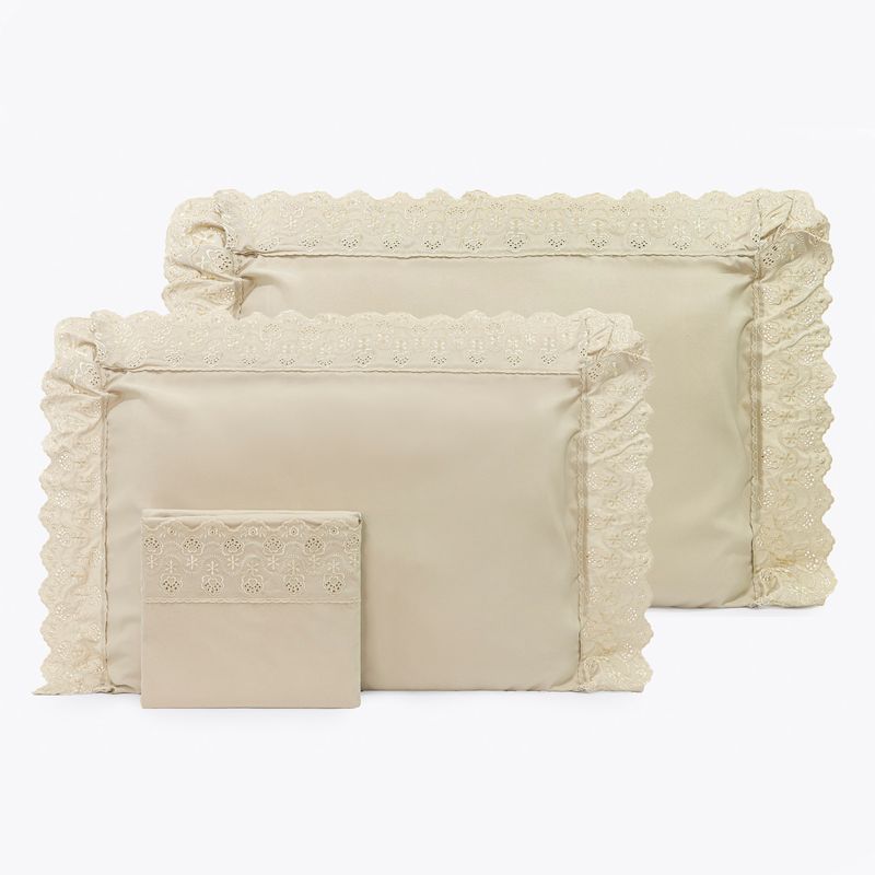 JOGO DE CAMA QUEEN BORDADO INGLÊS - ARVORE BEGE