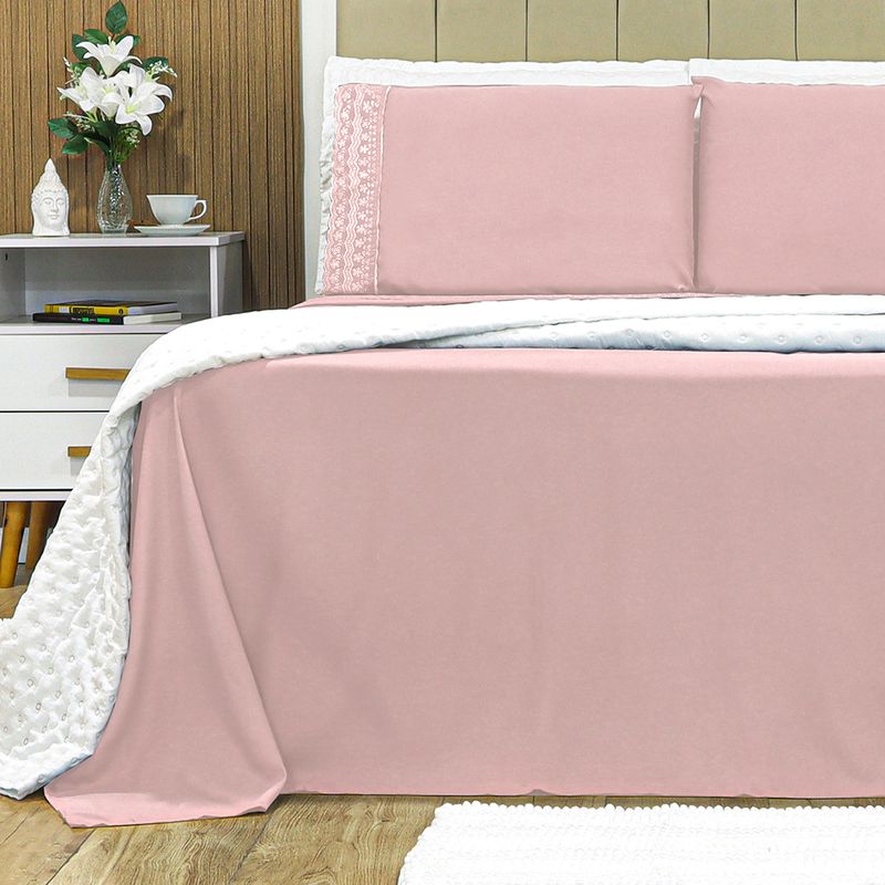 JOGO DE CAMA QUEEN BORDADO INGLÊS - BROTINHO ROSE