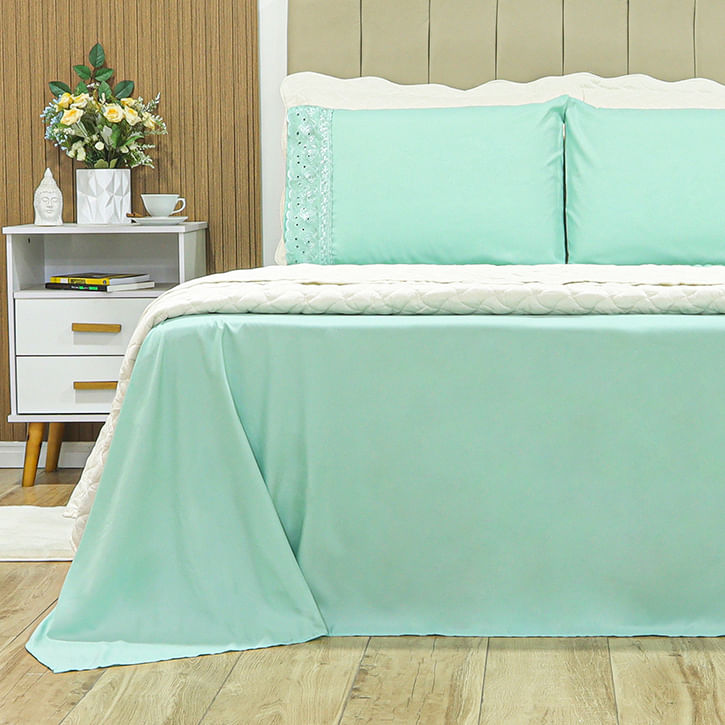 JOGO DE CAMA QUEEN BORDADO INGLÊS - Brotinho Verde