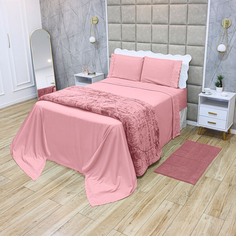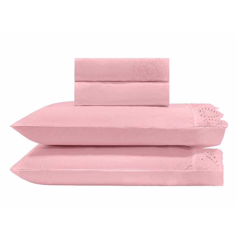 JOGO DE CAMA QUEEN BORDADO INGLÊS - CORAÇOES ABERTO ROSA