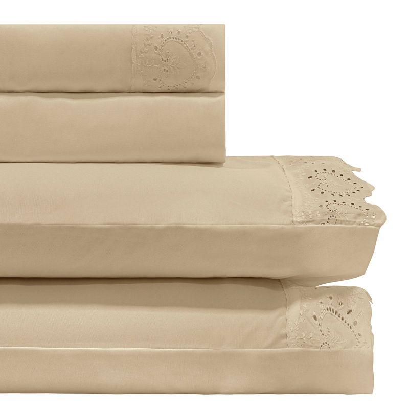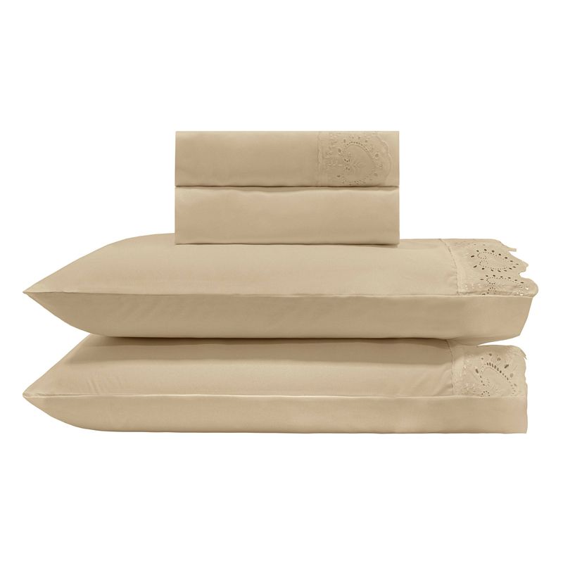JOGO DE CAMA QUEEN BORDADO INGLÊS - CORAÇÕES ABERTOS BEGE
