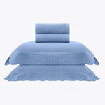 JOGO DE CAMA QUEEN BORDADO INGLÊS - REDE AZUL CLARO