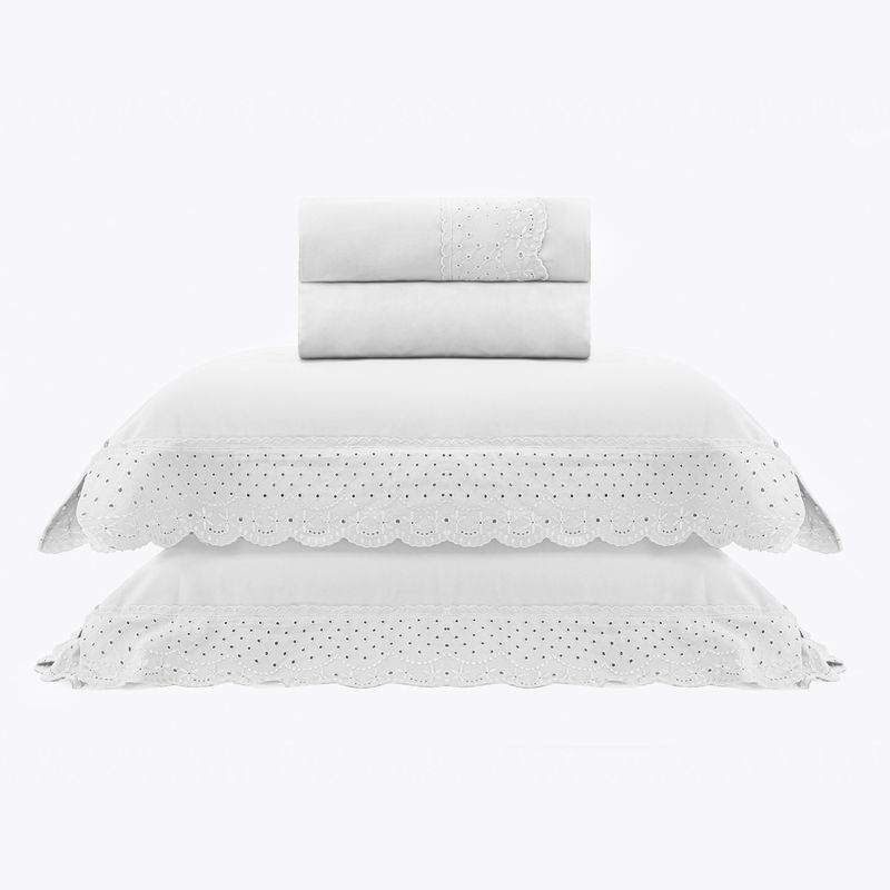JOGO DE CAMA QUEEN BORDADO INGLÊS - REDE BRANCO