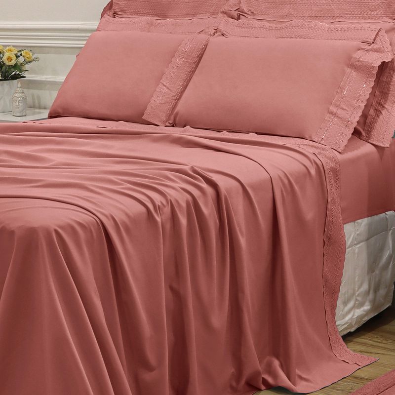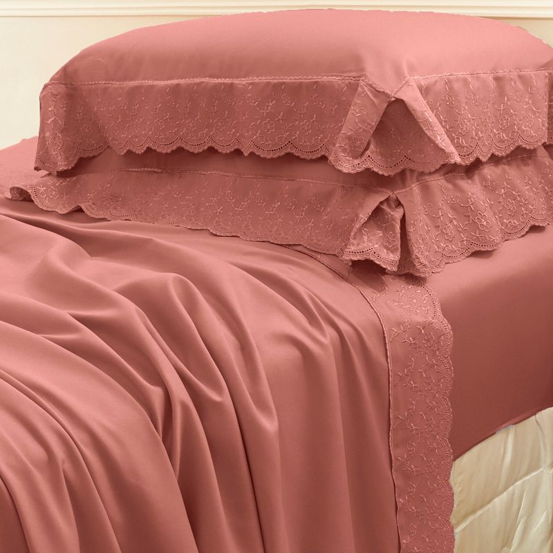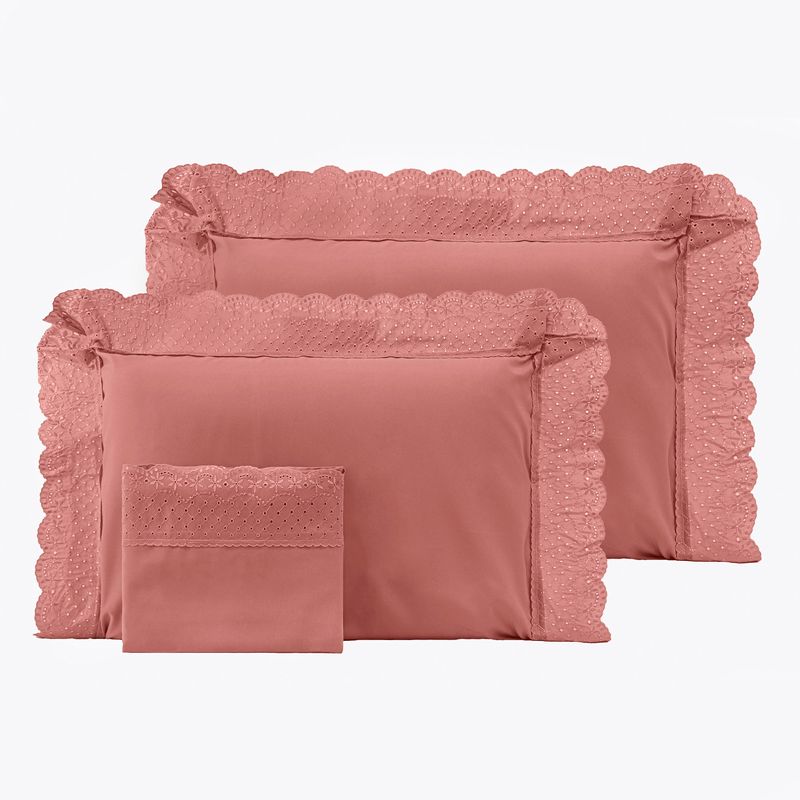 JOGO DE CAMA QUEEN BORDADO INGLÊS - REDE ROSA ESCURO