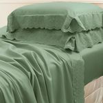 JOGO DE CAMA QUEEN BORDADO INGLÊS - REDE VERDE ESCURO