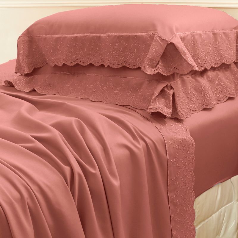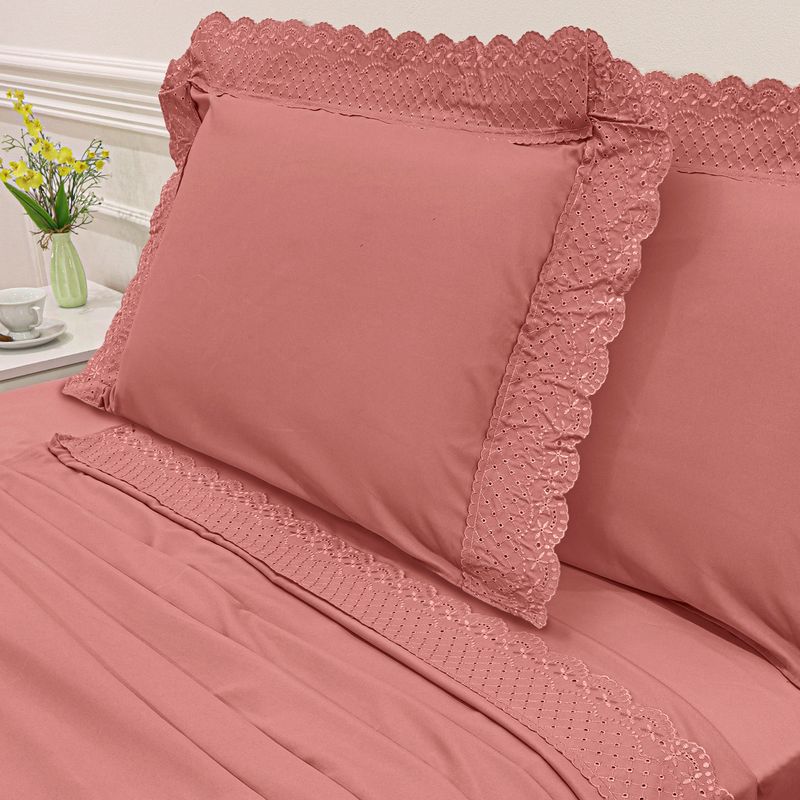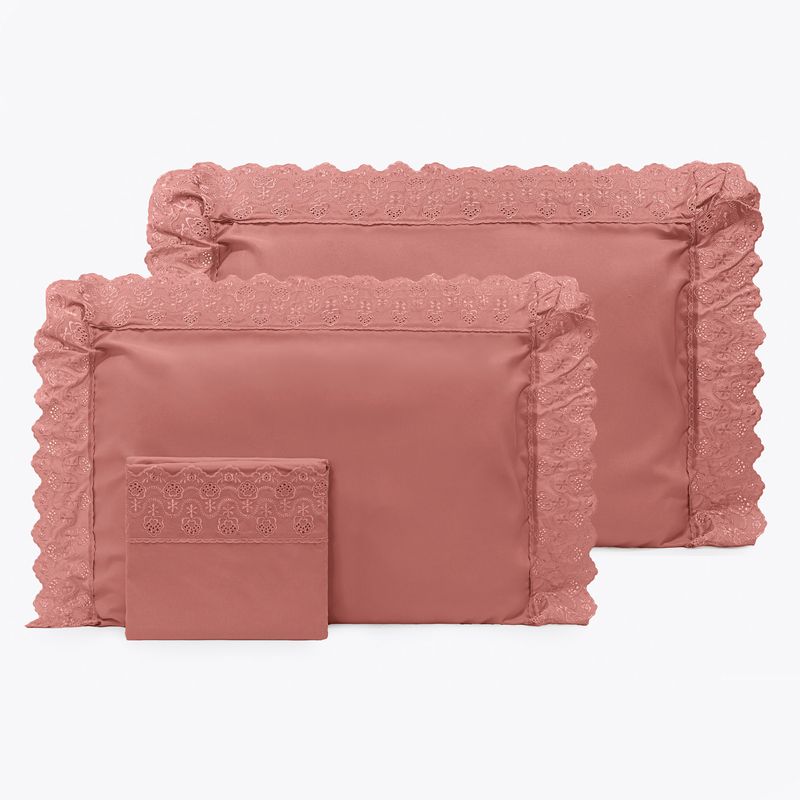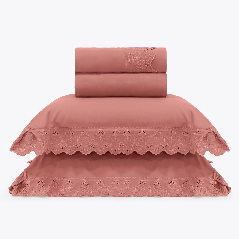 JOGO DE CAMA QUEEN BORDADO INGLÊS - ARVORE ROSA ESCURO