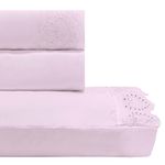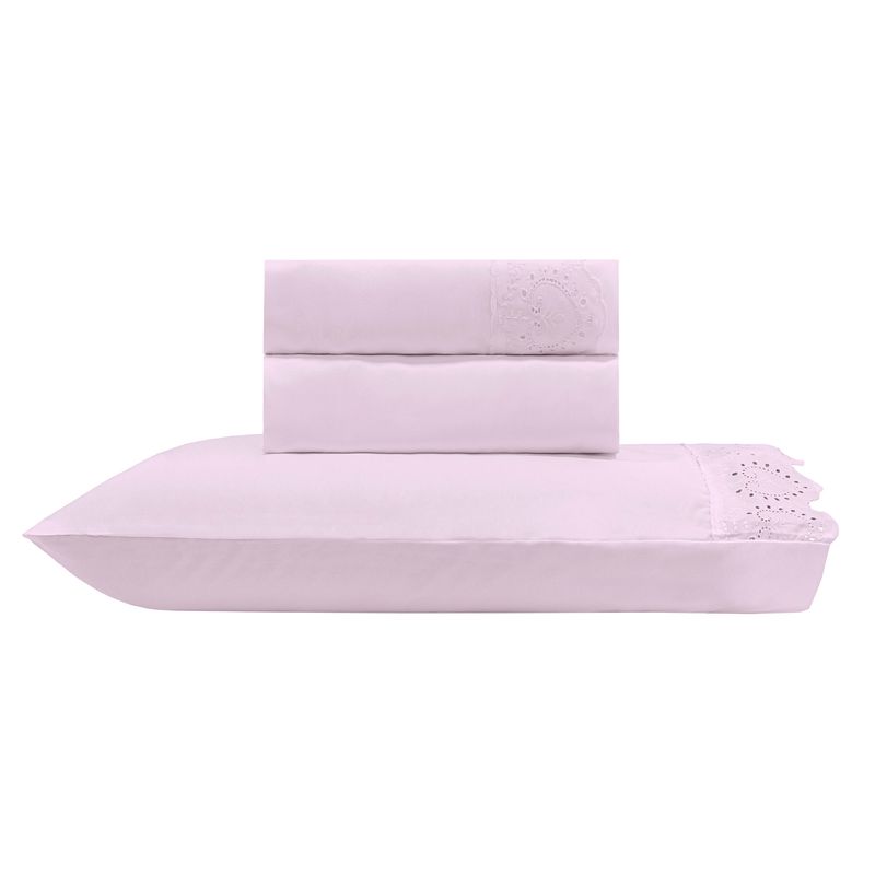 JOGO DE CAMA SOLTEIRO BORDADO INGLÊS - CORAÇOES ABERTO LILAS