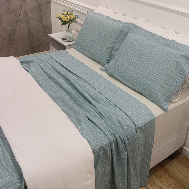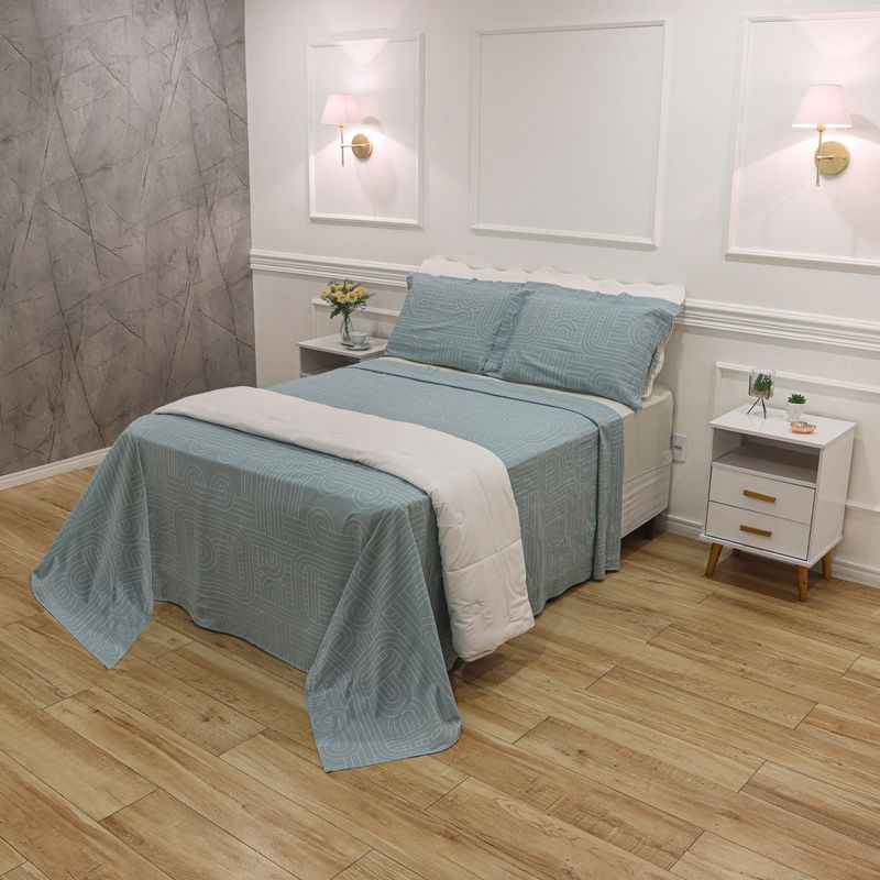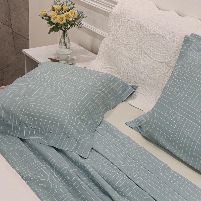 JOGO DE CAMA SOLTEIRO 180 FIOS PONTO AJOUR 100% ALGODÃO - DANTE AZUL